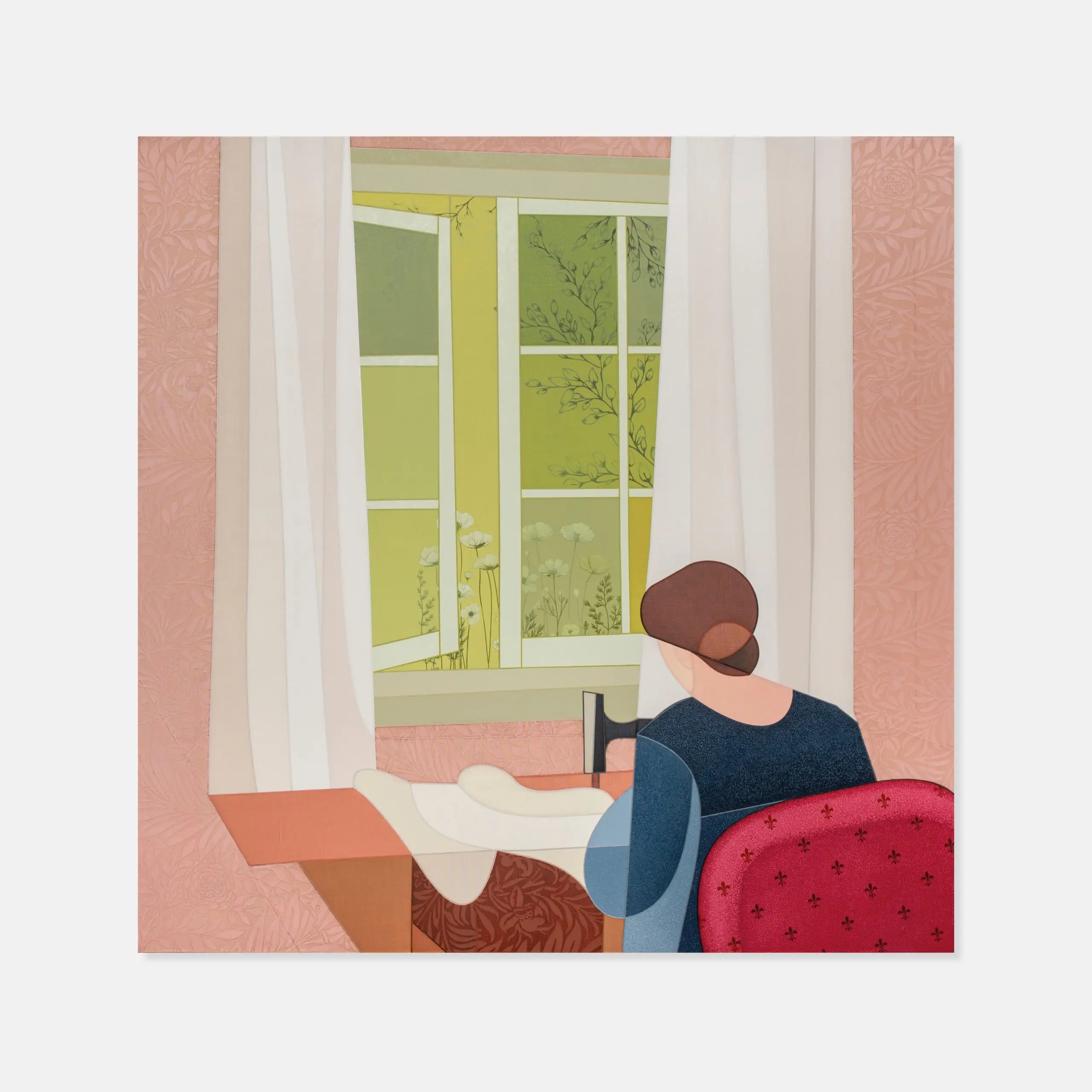 Lo desconcertante es que cada patrón padece problemas de dibujo, proporción, perspectiva…; incluso aquellas versiones de pinturas creadas a finales del siglo XIX y principios del XX por Albert Guillaume, Henri Lebasque o Vilhelm Hammershoi. Pintar el “error” se convierte en una elección del absurdo como valor. Detrás de ello hay un desapego emocional, nunca indiferencia, al que precede otra decisión: estas imágenes las escoge y descarga su esposa de Internet. Colaboración donde el autor se permite actuar como una especie de amanuense, que busca y encuentra en la creatividad amateur como expresión viral de la cultura remix actual, una revisión de sus propios límites estéticos.