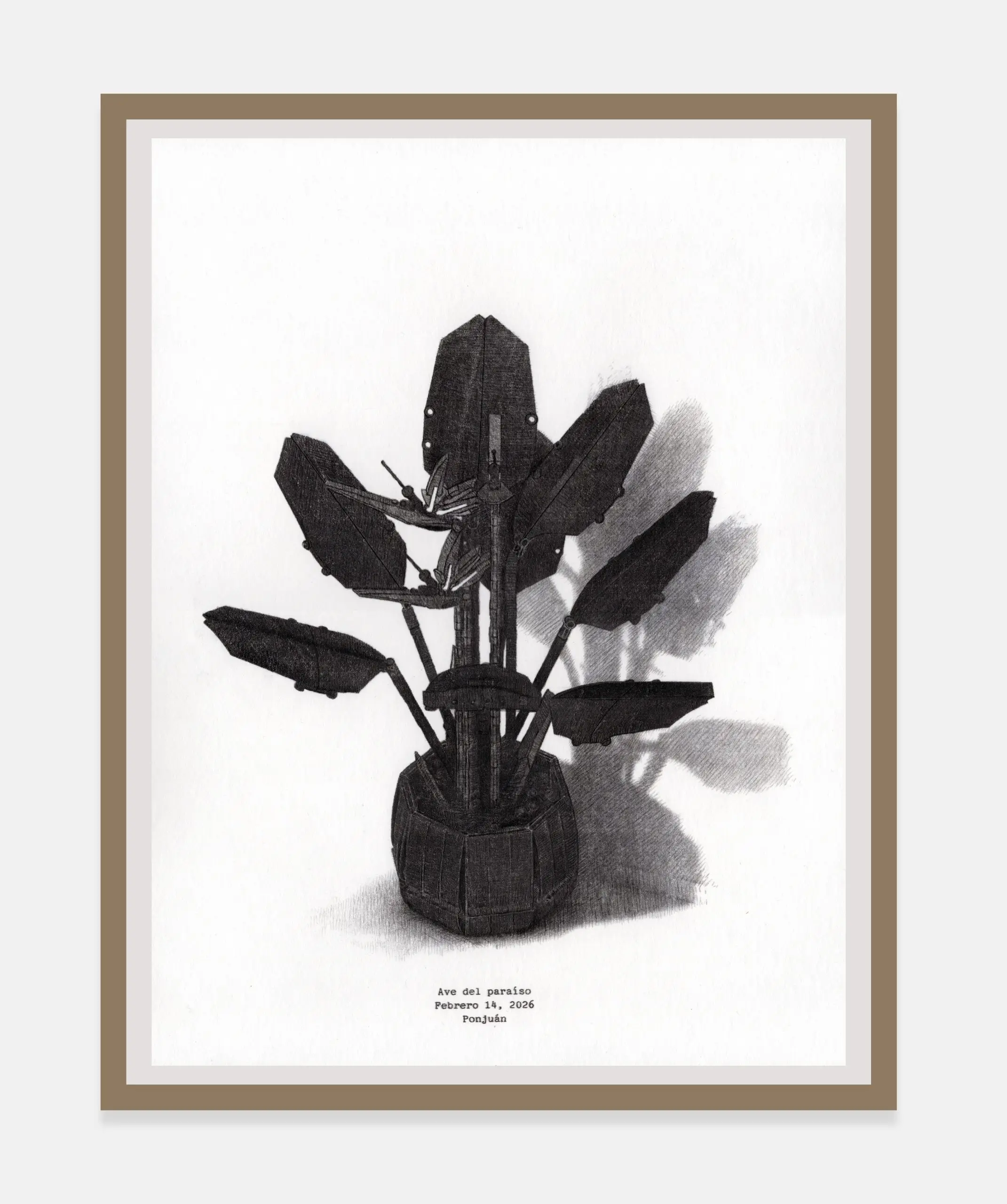 Bajo el eslogan que las flores y plantas artificiales están hechos para perdurar, la Colección Botanical Legohabla de una frescura eterna donde lo orgánico deviene material ABS de alta calidad. No se compra, se colecciona, y en este intercambio de términos se vende un simulacro de naturaleza que se (des)arma e intercambia a placer. El divertimento terapéutico de cada construcción, agrega, aparte del manual de instrucciones, la libertad de personalizar ramas, flores, capullos y pétalos. Ponjuán aprehende este “efecto realista” que encarna el fragmento, lo industrial, lo serial, lo decorativo, lo lúdico e interactivo, a través de una serie de dibujos. El gesto vuelve a los complejos procesos que rigen la representación contemporánea, acechados por el débil límite que existe entre estereotipo y arquetipo.