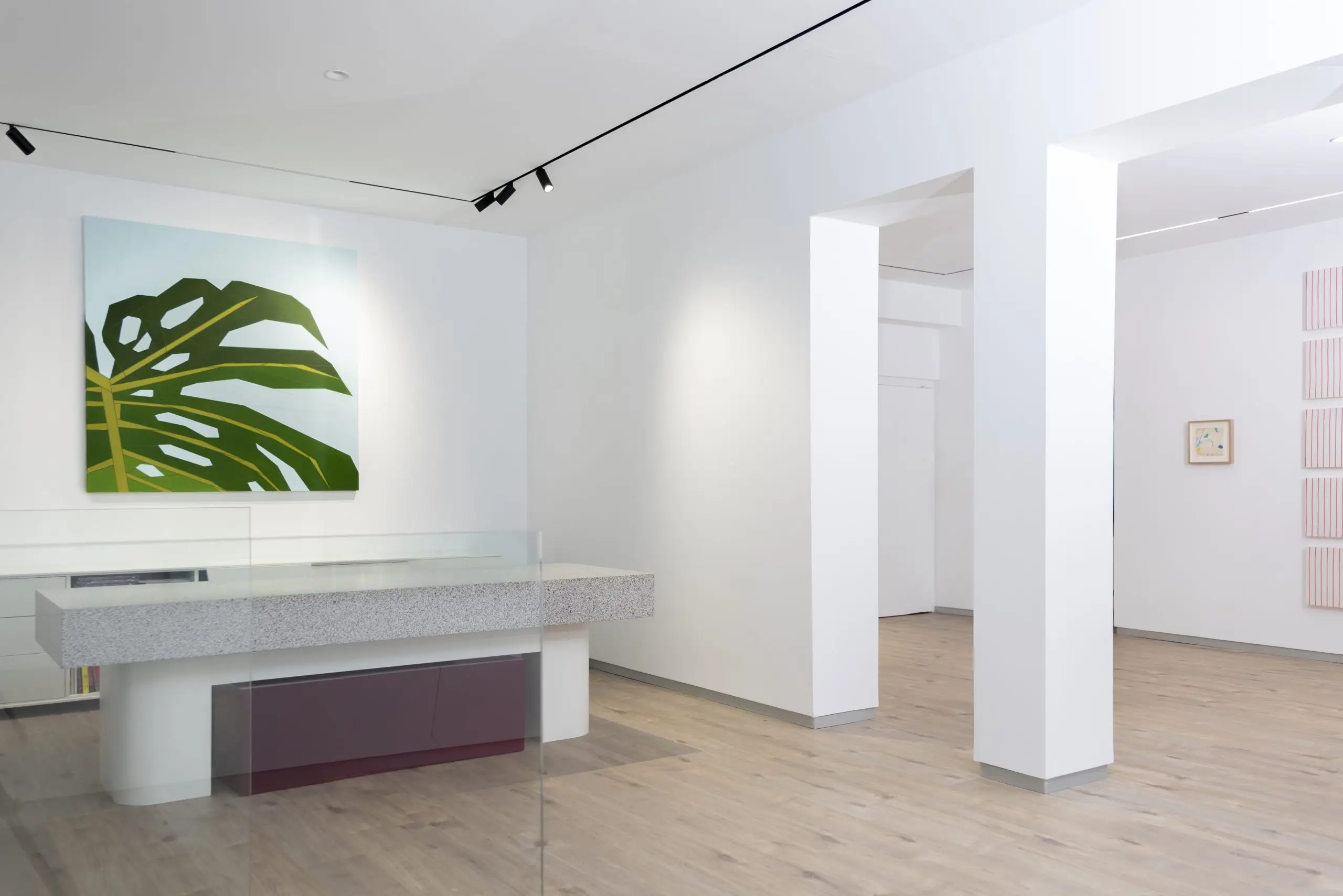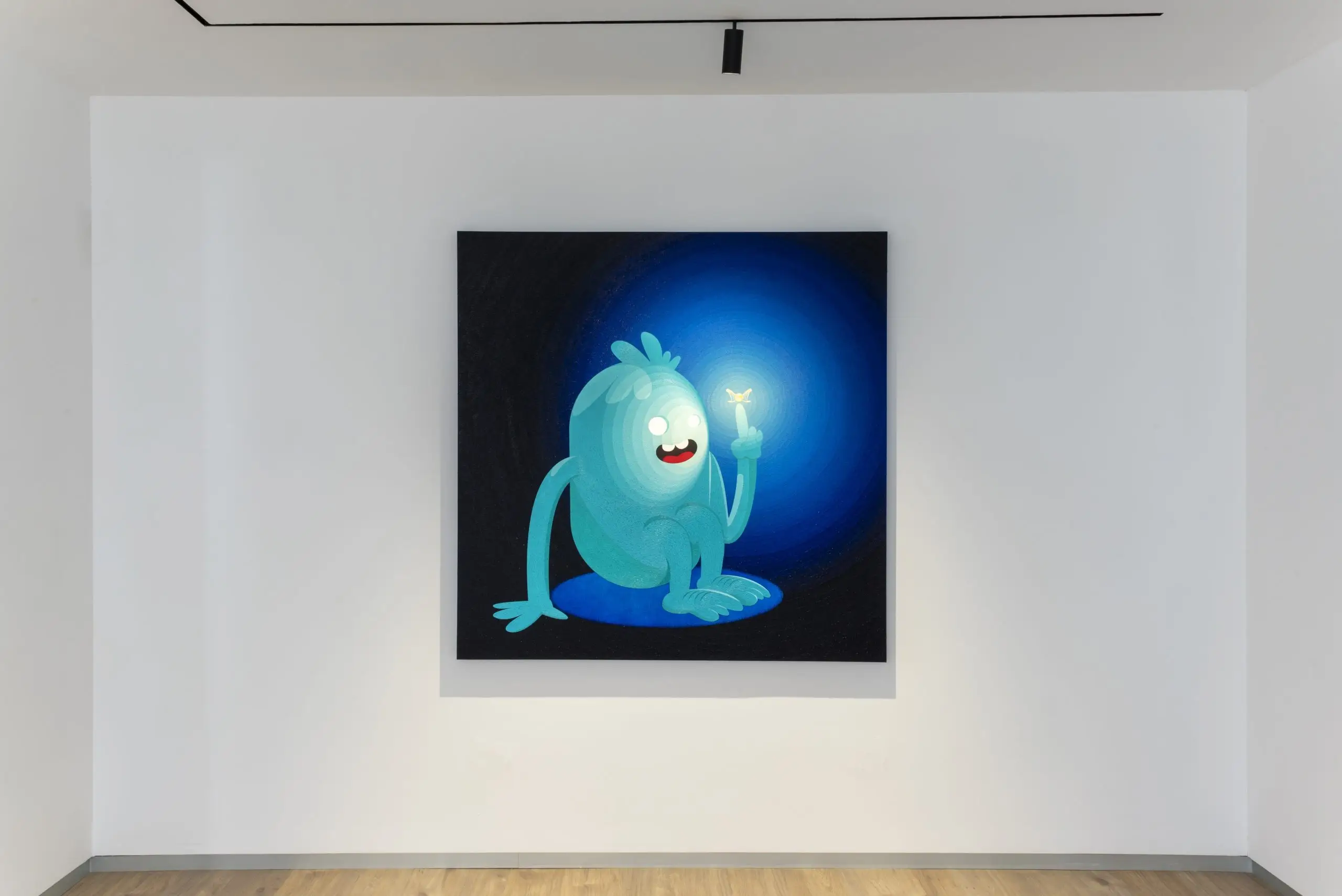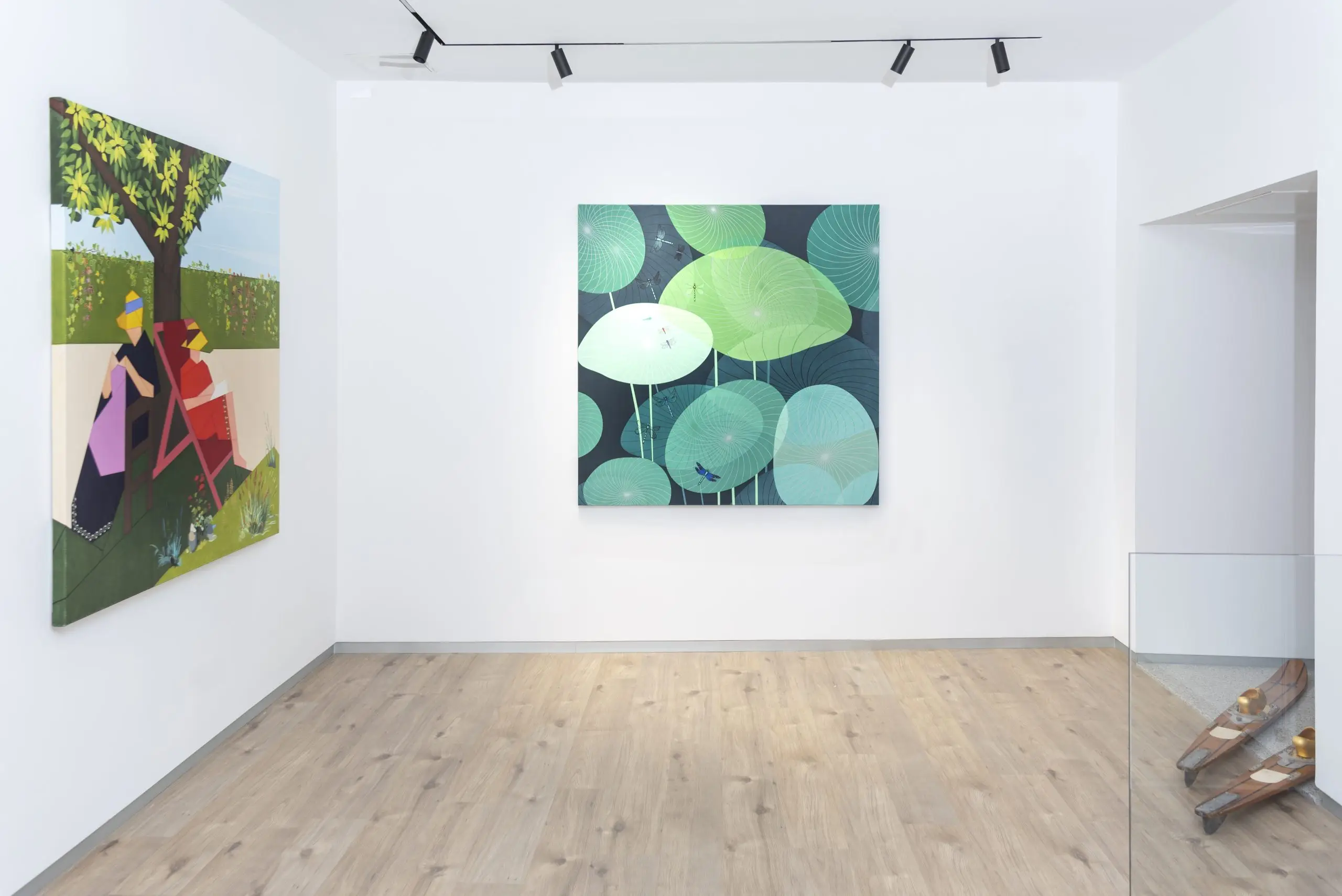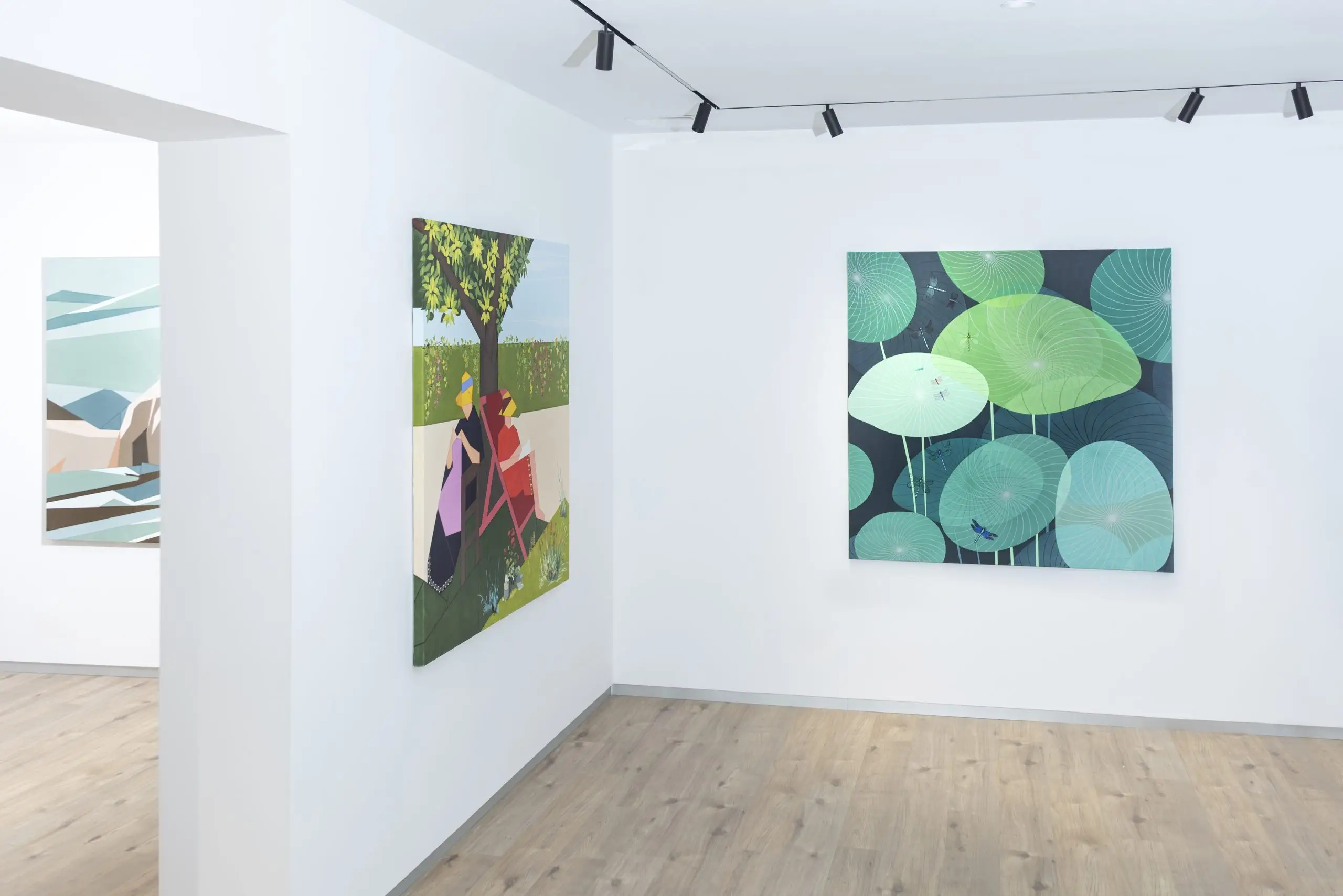Apertura Ruy López responde a una evolución de dos exposiciones previas: País de nieve (2019), y Cartas a Théo (2022). Con ellas estableció una línea de trabajo donde se adueñó de vectores, mockups, plugins…, productos digitales creados para apps, redes sociales, marketing, publicidad, etc., y los materializó a través del óleo. Prototipos, cuya construcción en capas, permite editar múltiples variantes y agilizar los tiempos de producción y entrega del diseño contemporáneo. Su visualidad kitsch, estereotipada e ideal respecto al referente, encontró en Ponjuán a un ejecutor impecable por una erótica de la pintura que remeda la factura digital print.