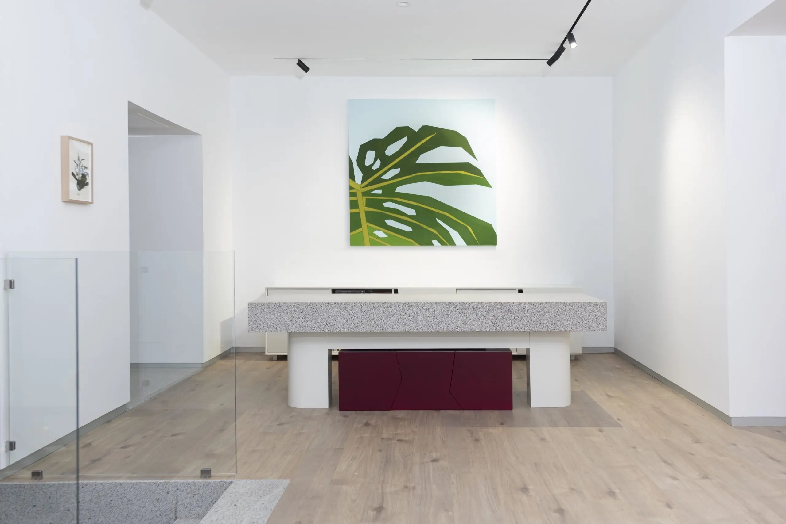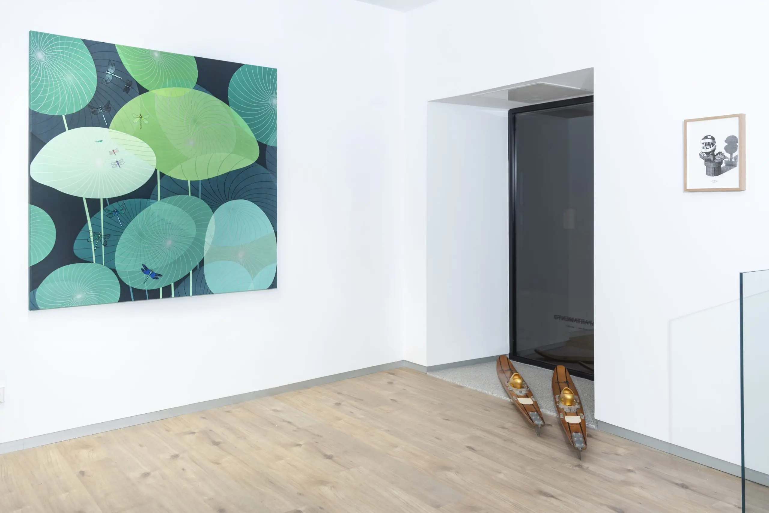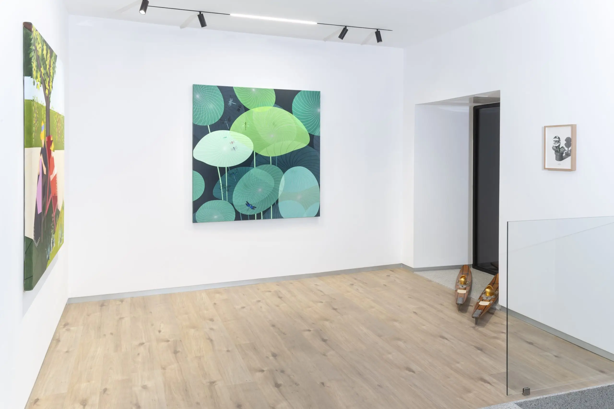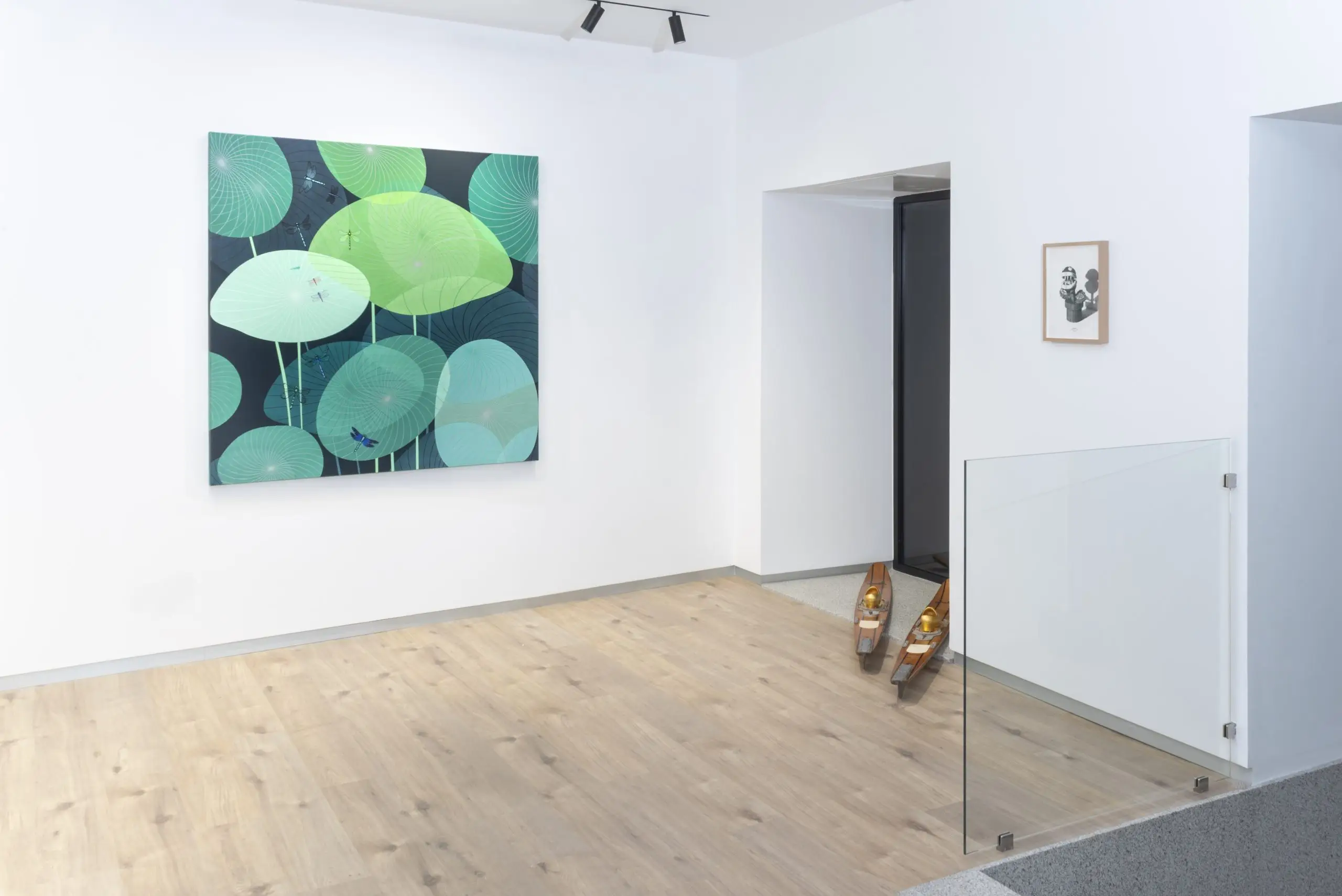 Apertura Ruy López responde a una evolución de dos exposiciones previas: País de nieve (2019), y Cartas a Théo (2022). Con ellas estableció una línea de trabajo donde se adueñó de vectores, mockups, plugins…, productos digitales creados para apps, redes sociales, marketing, publicidad, etc., y los materializó a través del óleo. Prototipos, cuya construcción en capas, permite editar múltiples variantes y agilizar los tiempos de producción y entrega del diseño contemporáneo. Su visualidad kitsch, estereotipada e ideal respecto al referente, encontró en Ponjuán a un ejecutor impecable por una erótica de la pintura que remeda la factura digital print.
