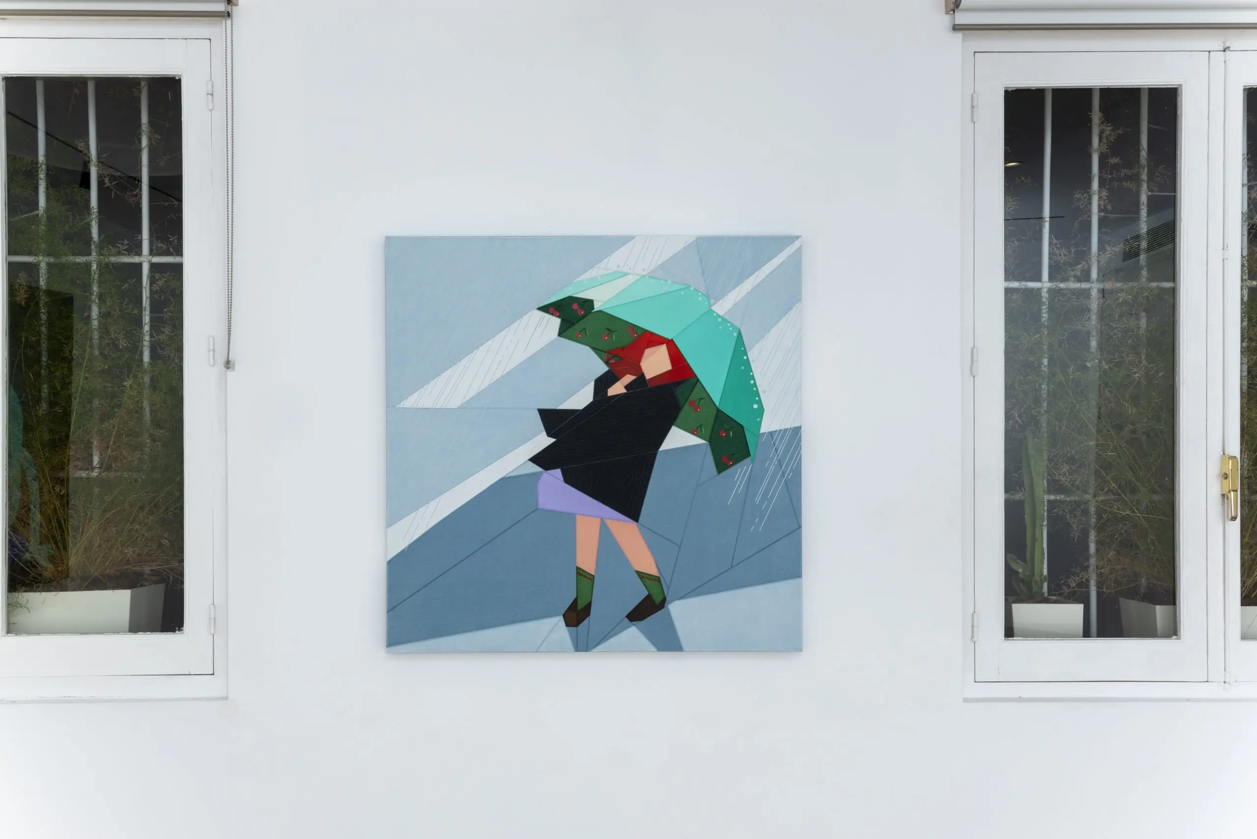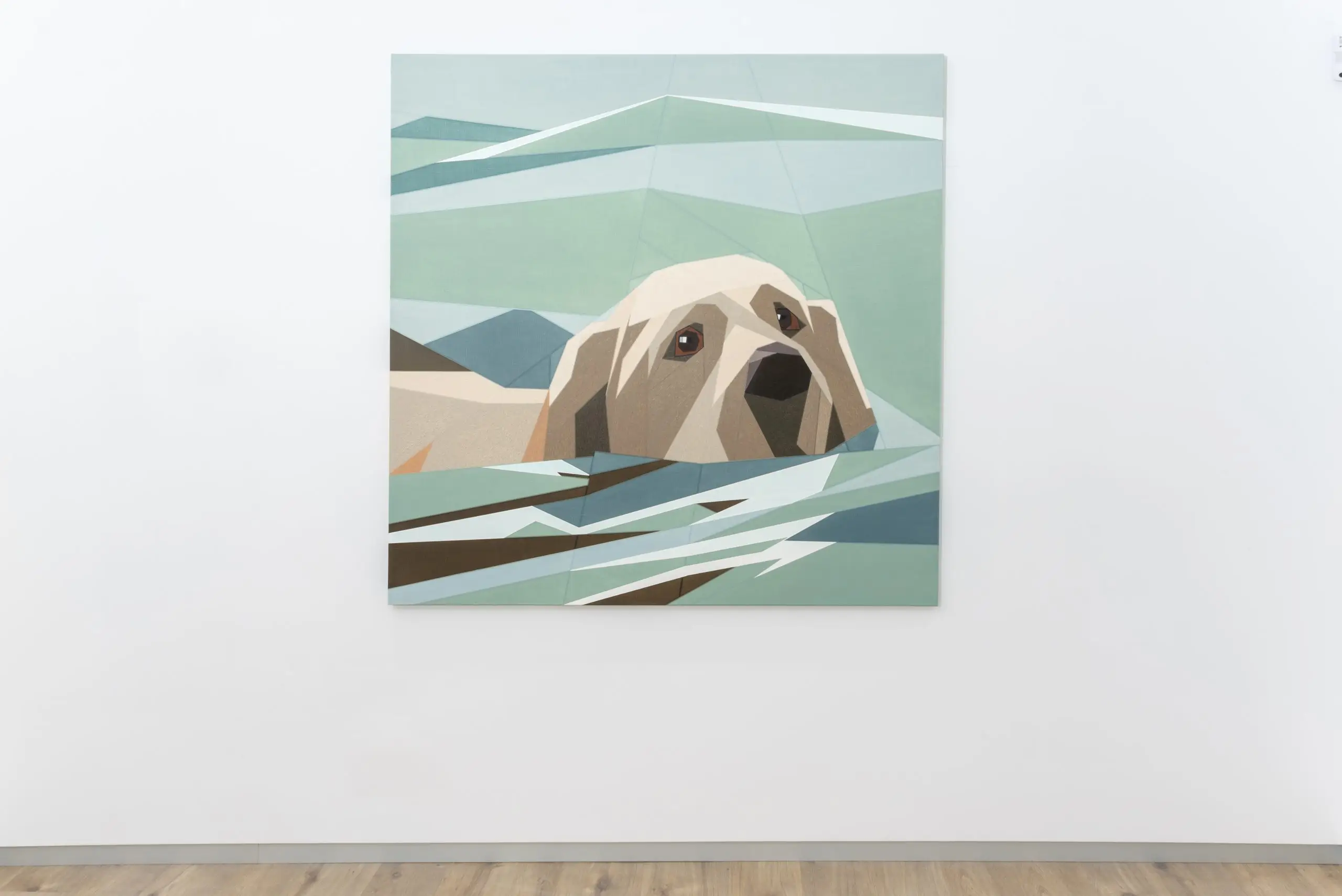 En esta ocasión, su atención se desvió hacia el quilting art. Su apropiación de una expresión cultural femenina no responde a un acto de intrusismo en el discurso de género. Lo que le interesa son sus plantillas de corte figurativo: imágenes modificadas a través de softwares, y convertidas –literalmente– en patrones de representación de un cubismo naïf. Planos geométricos con leyendas de color sirven de boceto y herramienta de trabajo para el quilter potenciar su capacidad creativa. Cada quilting es único, aunque su punto de partida sea el mismo.