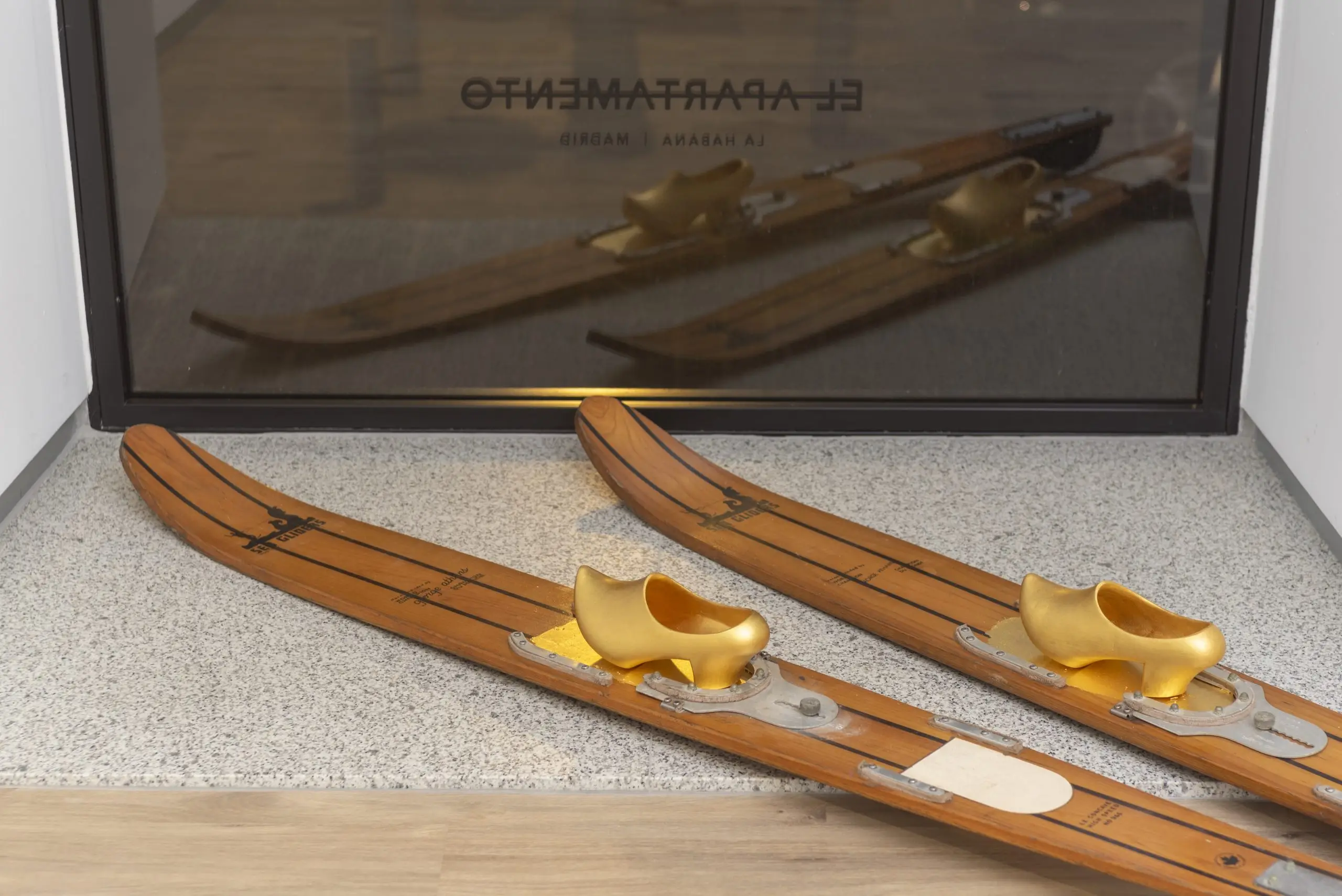 Cartas a Théo (2022) recupera la autobiografía espiritual y artística que reúne las cartas de Vincent van Gogh a su hermano menor y mecenas. Testimonio que converge en un ejercicio escultórico de upcycling: un par de esquíes acuáticos viejos tiene por mecanismo de fijación unos zuecos de madera forrados en pan de oro 24k. Los zuecos regresan a van Gogh, y a su afición por el amarillo y los zapatos –creó 26 entre cuadros y dibujos– que algunos relacionan, más que con la vida campesina u obrera, a su andar errante en busca de pertenencia y subsistencia. Para completar, la referencia a un deporte competitivo de aventura, deslizamiento, y velocidad, que requiere equilibrio, fuerza, reflejos, y resistencia, equivale a un manifiesto de lo que necesita un artista para sobrevivir a su obsesión. Su trasfondo es el hombre cuya creación es una de las más caras e invaluables del mundo, pero que vivió y se suicidó en la pobreza, siendo uno de los ejemplos más terribles de éxito póstumo.