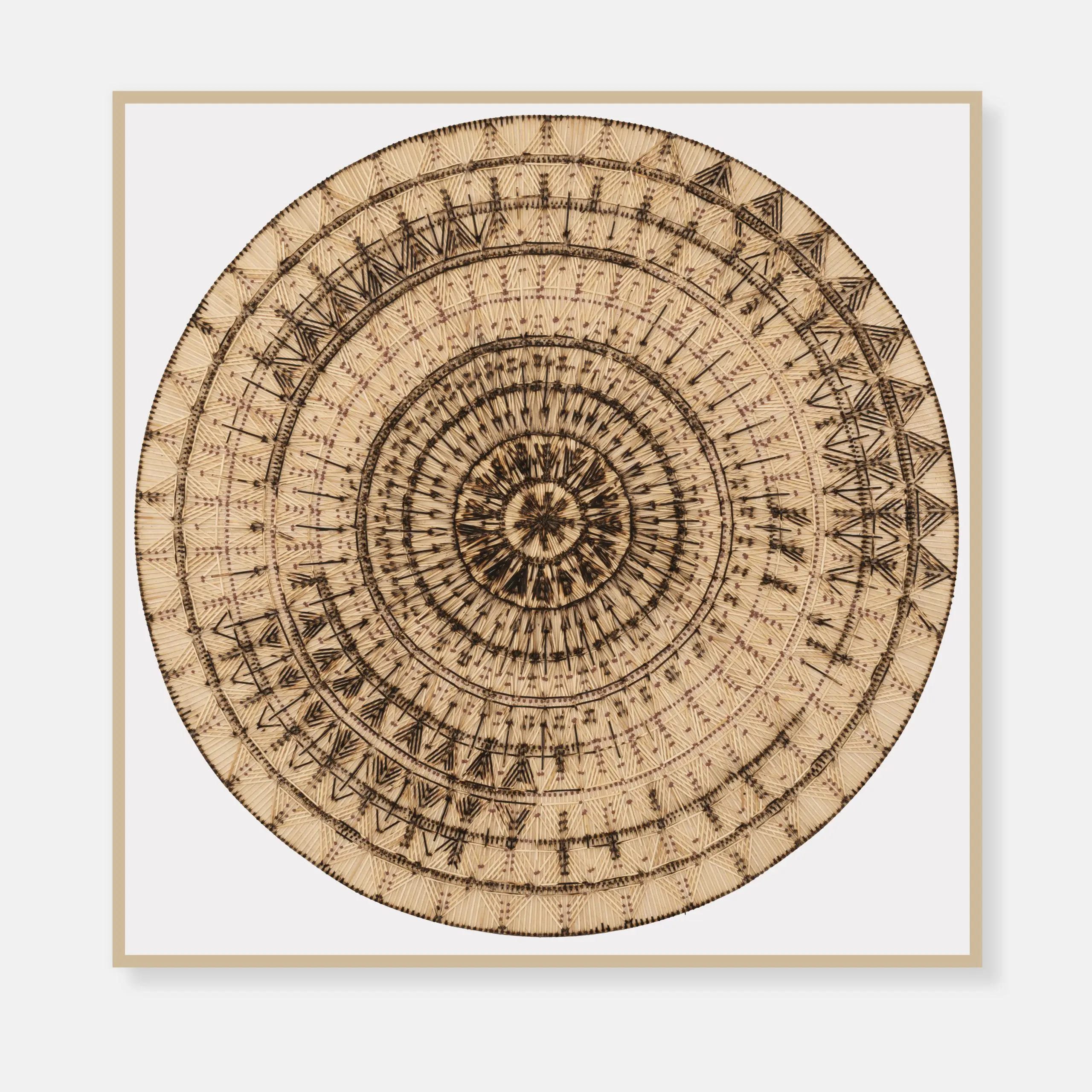Diana Fonseca Untitled, From series Tentación Consumación, 2026 Matches on wood ⌀ 100 cm ( ⌀ 39.4 in) (Dimensions of the artwork excluding the frame)