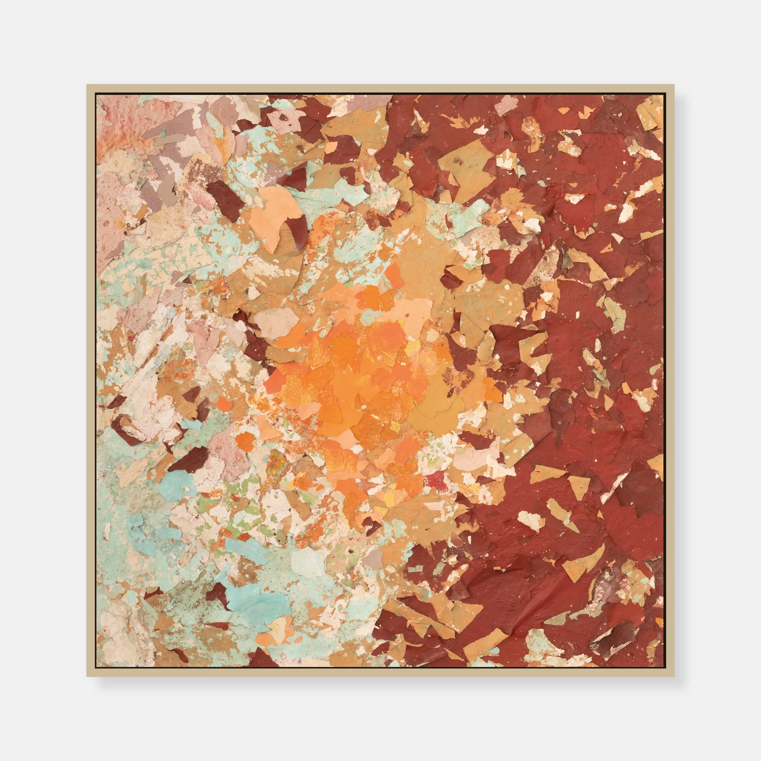Diana Fonseca Untitled, from the series Degradación, 2026 Fragments of Havana’s facade painting on wood 100 x 100 cm (39.4 x 39.4 in) (Dimensions of the artwork excluding the frame)