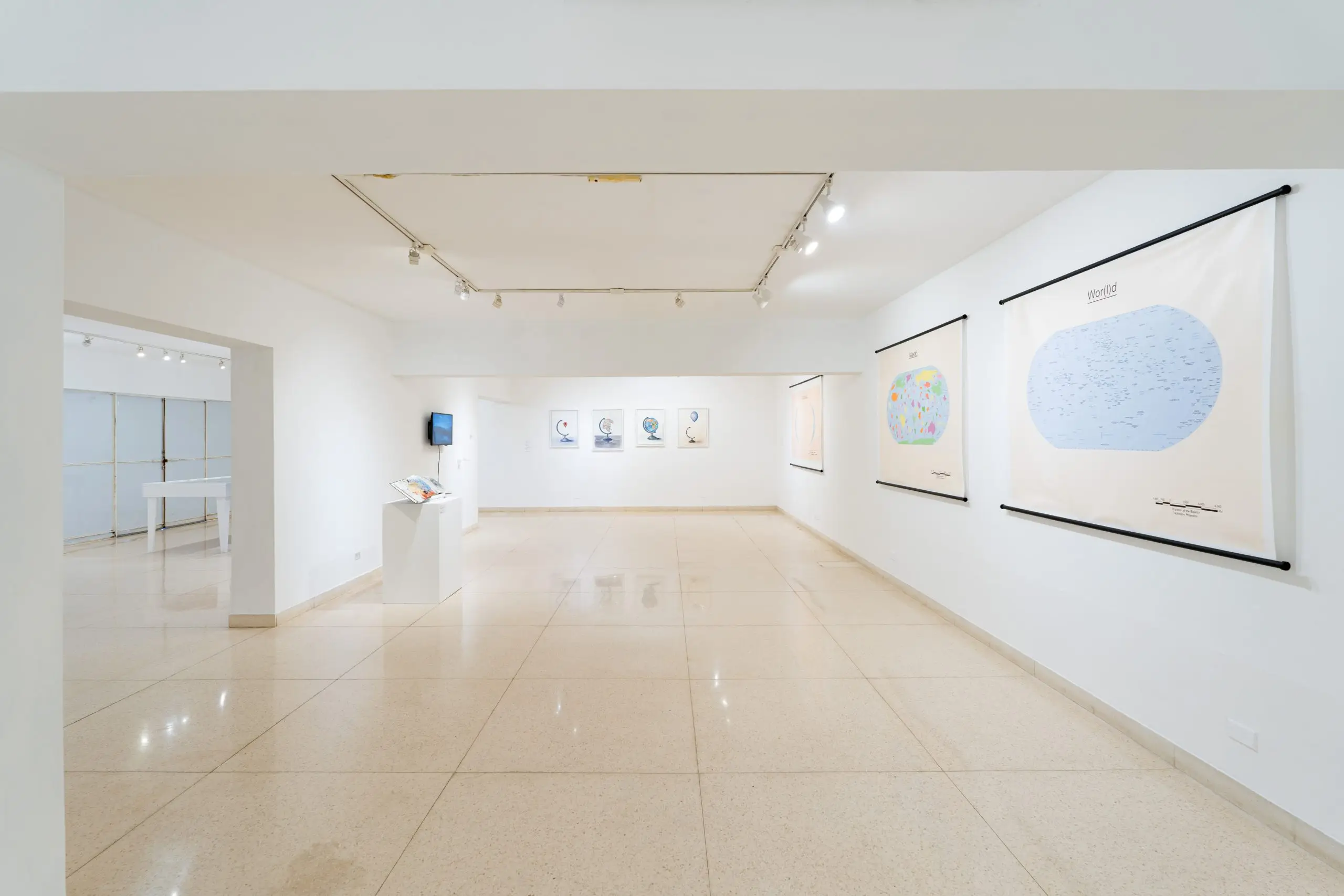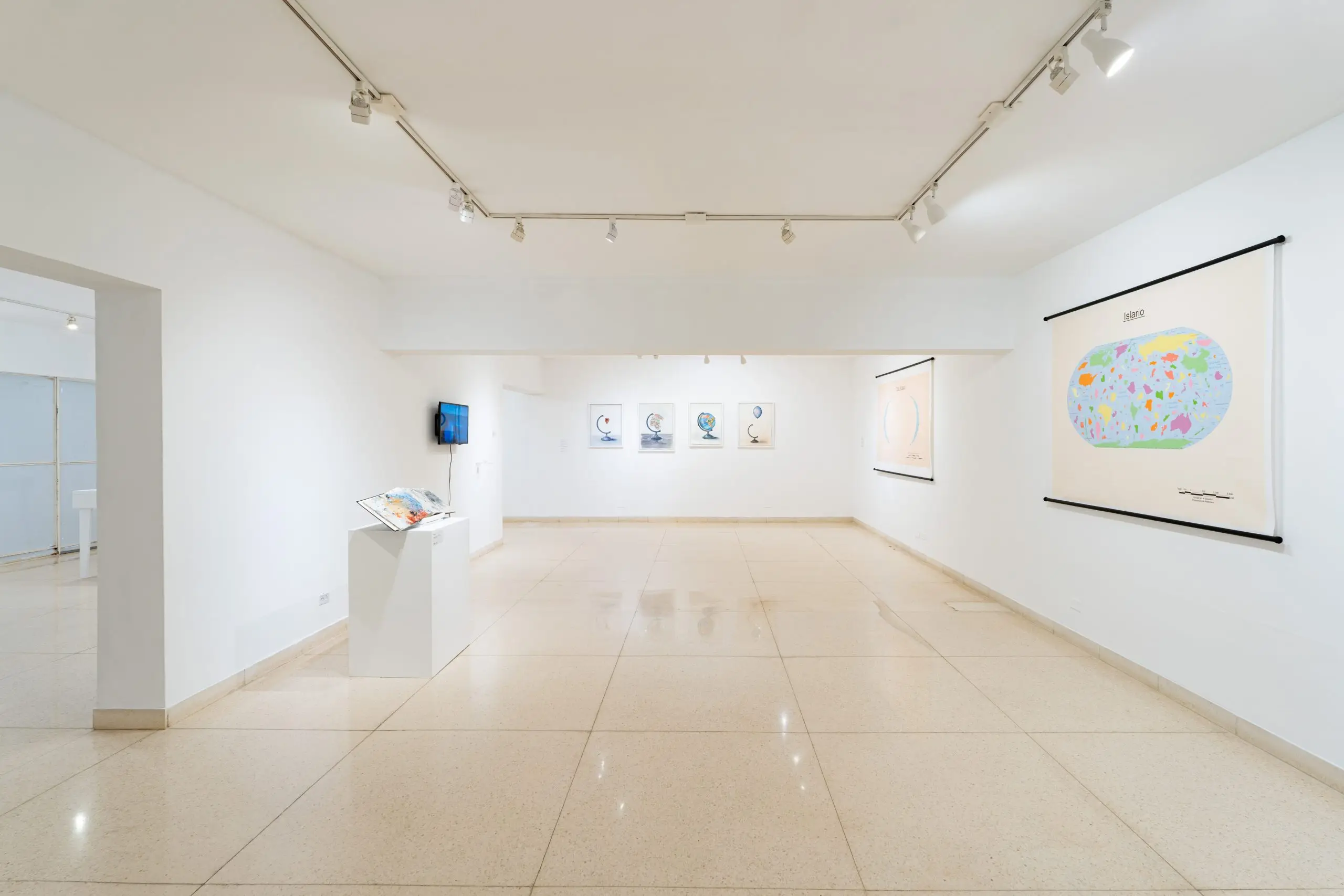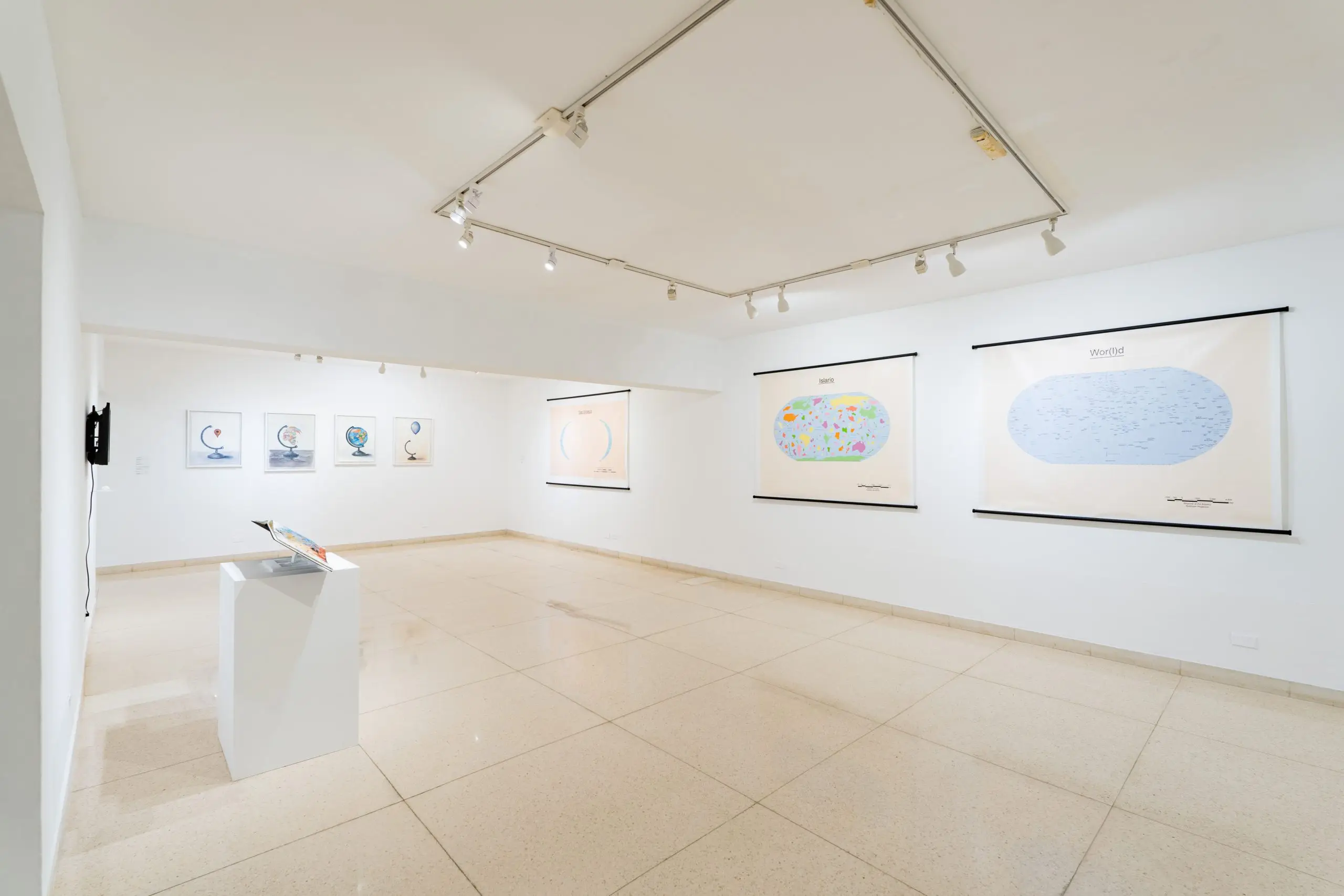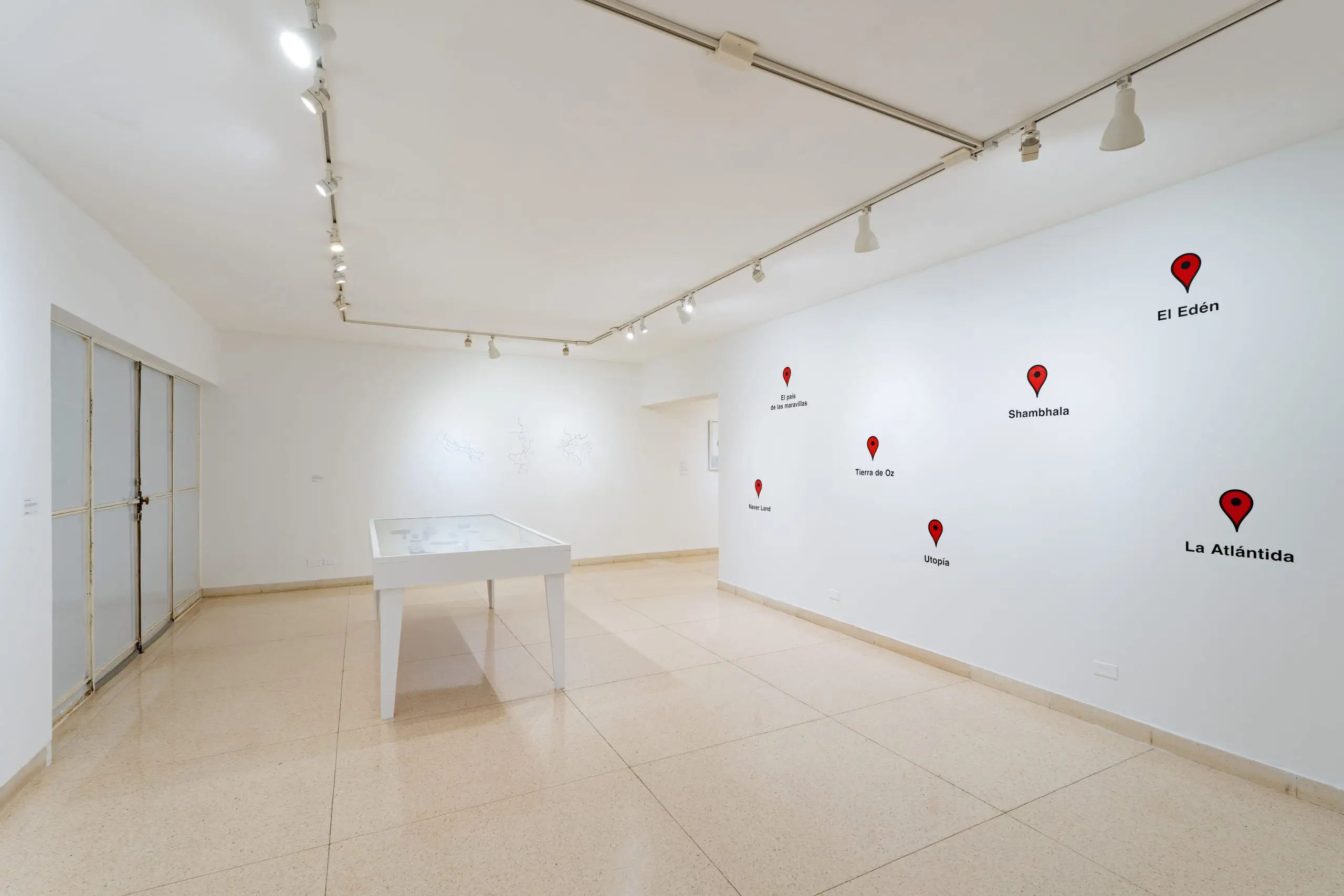 The exhibition proposes a journey, a drift through space. Following a conceptual logic, the artist draws a map -arbitrary, subjective and incomplete, like all maps- that invites us to question ourselves about the systems of representation we use and the underlying notions. A series of cartographies created in different media, installations, drawings, artbooks, videos, that function as a possibility to imagine a different metaphorical repertoire, an attempt to subvert the cartographic language.