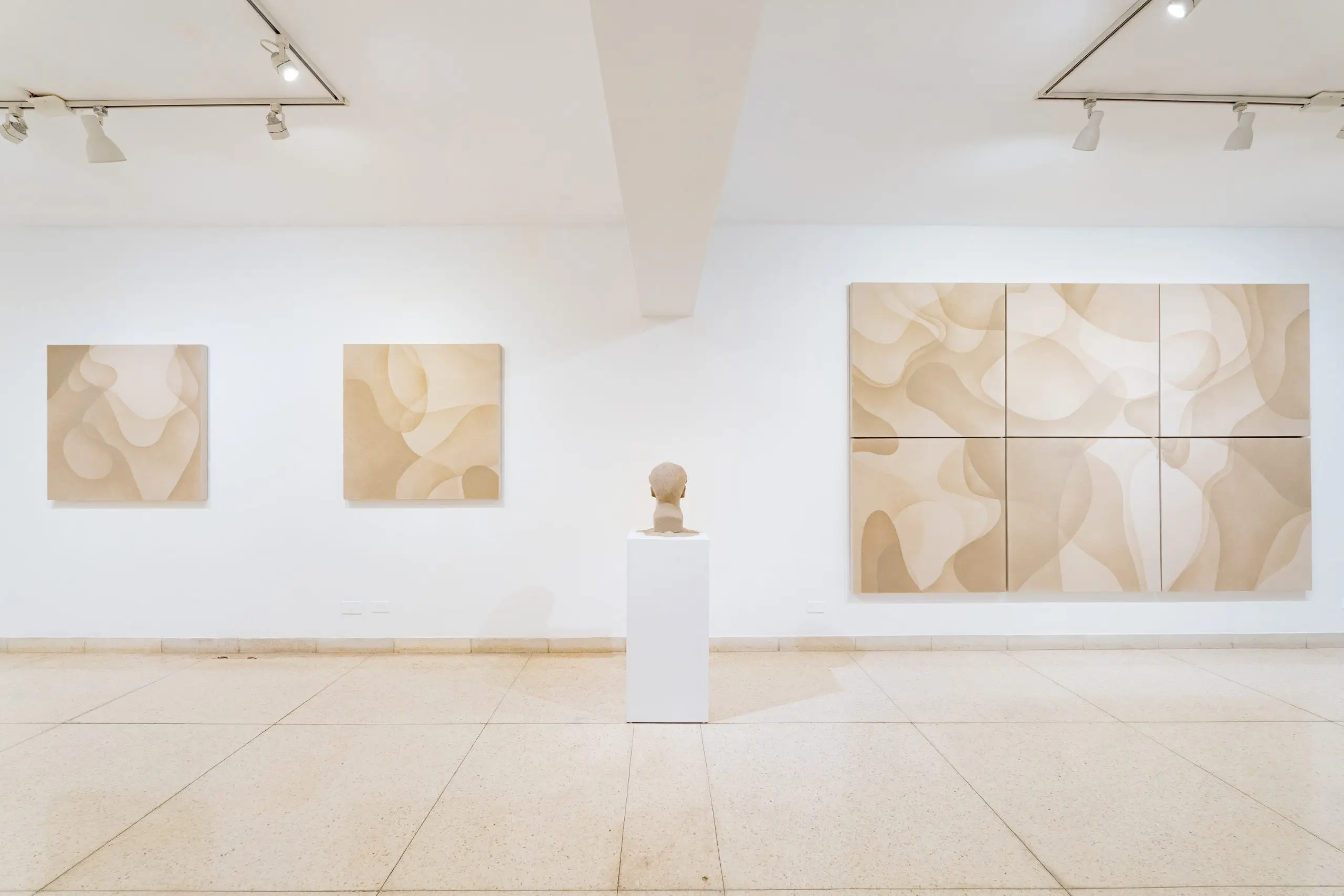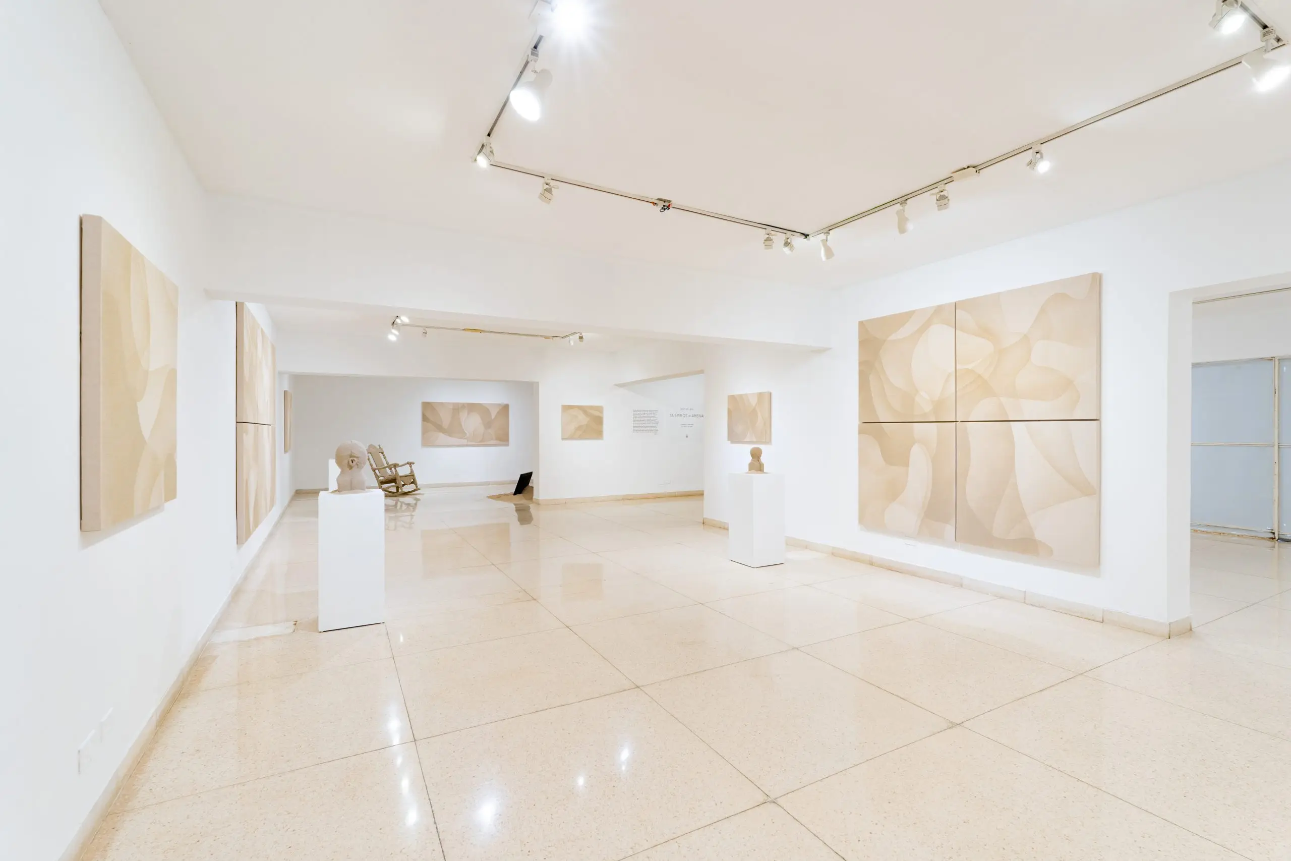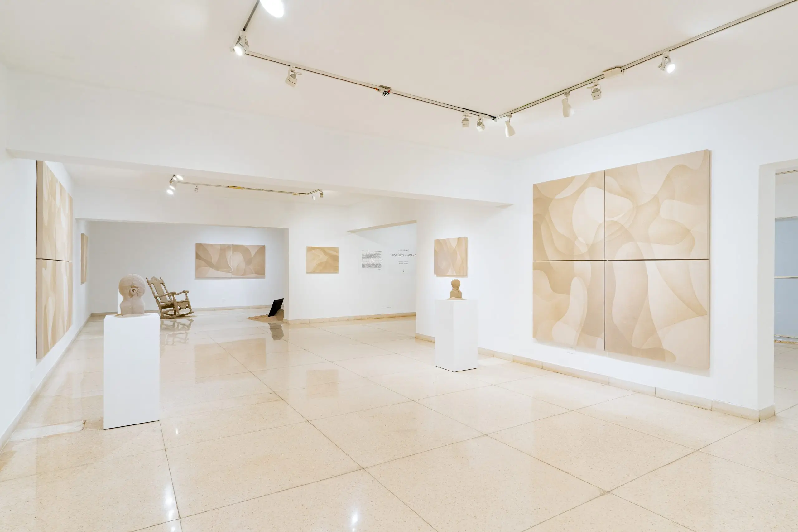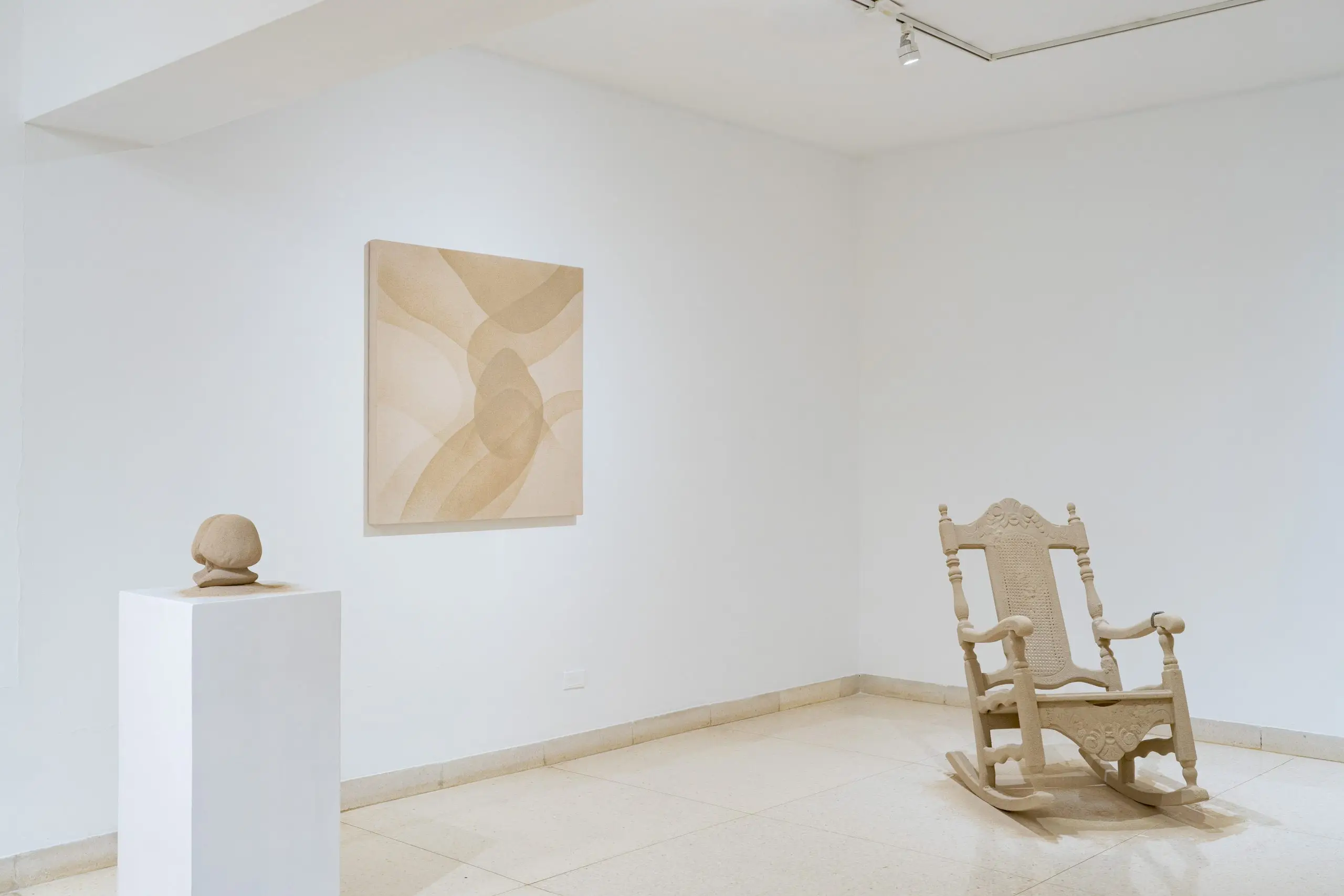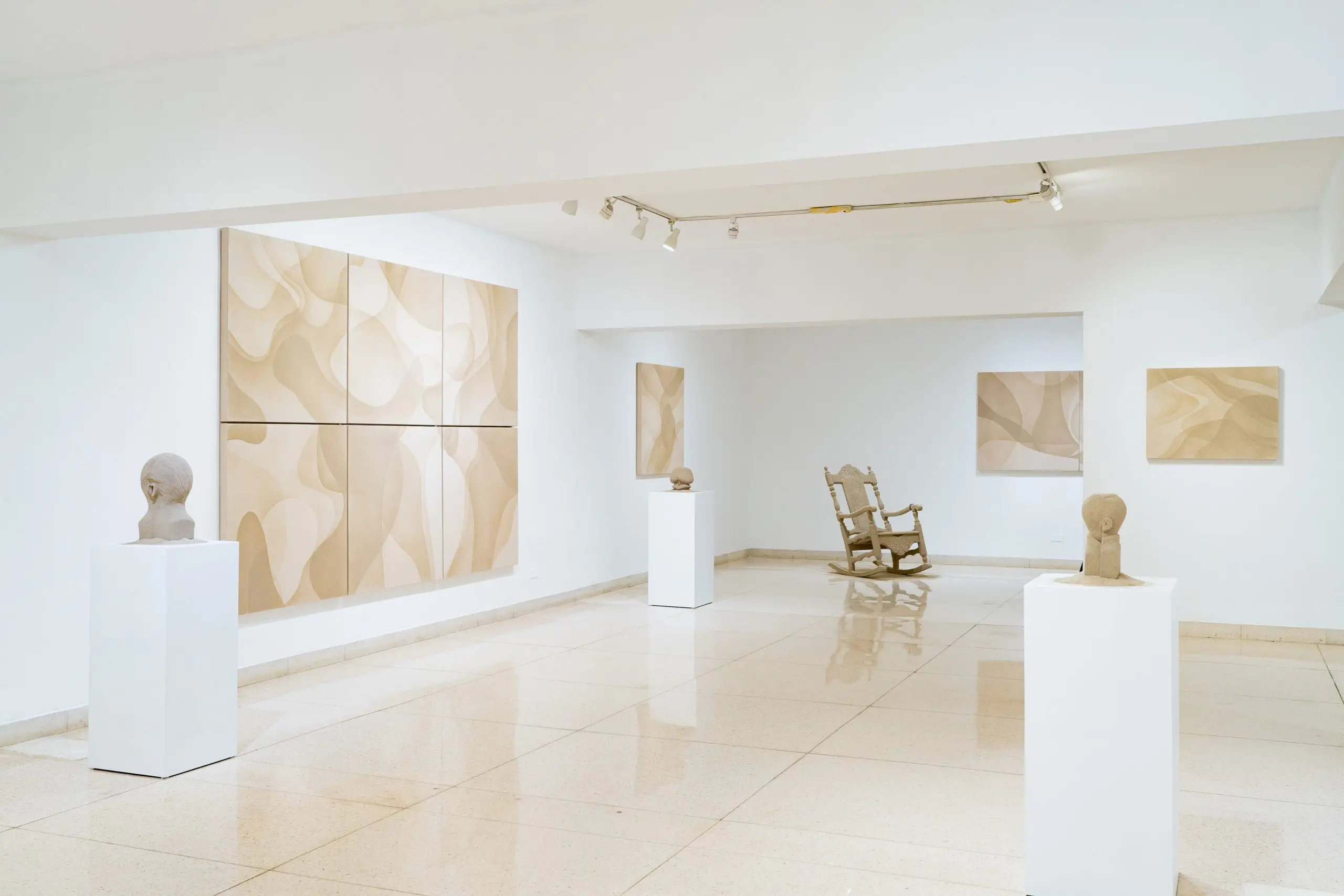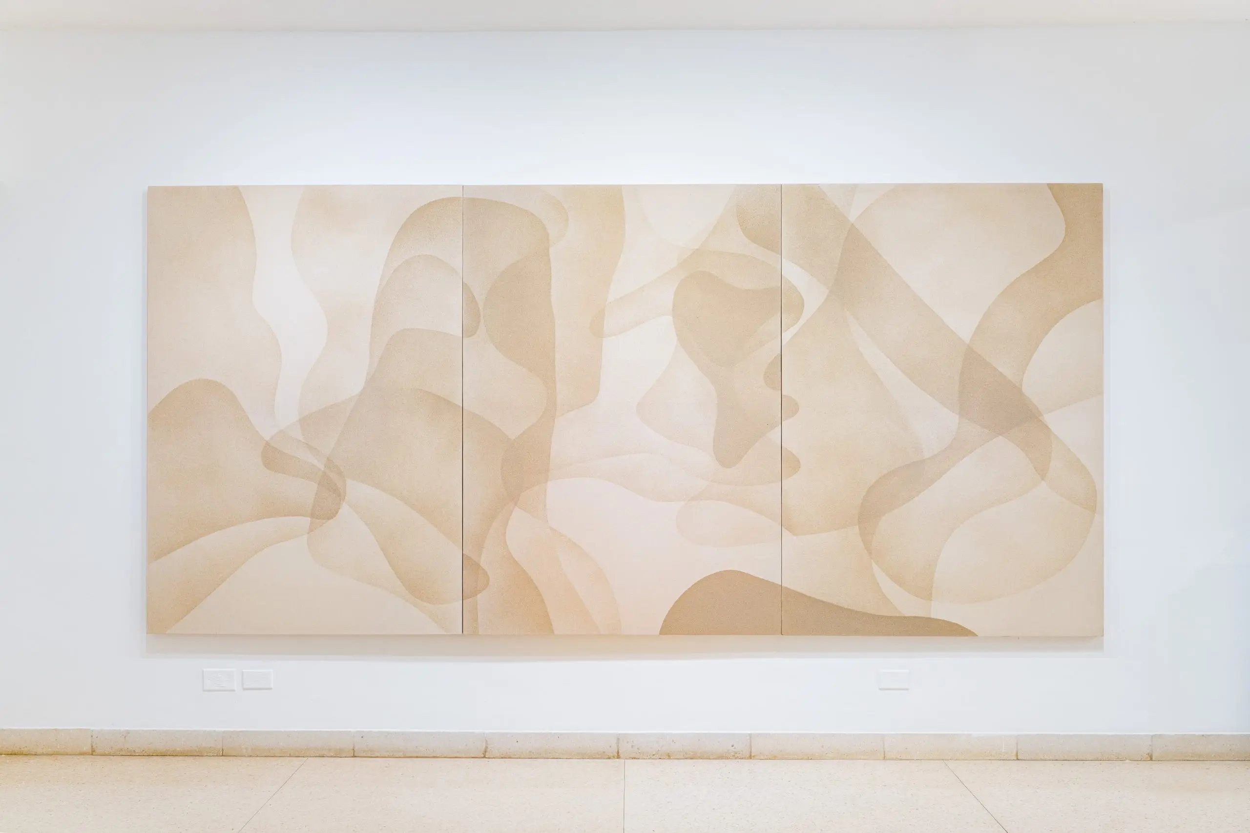 “Suspiros de arena” nasce da un gesto che si definisce tra il primario e il meditativo: prendere la sabbia tra le mani e lasciarla cadere intenzionalmente sulla tela grezza, come se ogni forma fosse un respiro sospeso, un sospiro che fissa l'istante. Questa tecnica evoca il ritmo organico della respirazione: inspirare, espirare; prendere, lasciare andare; esistere.