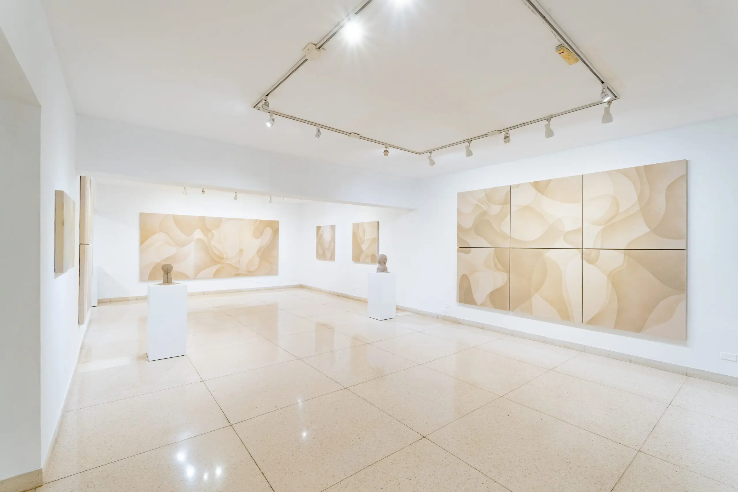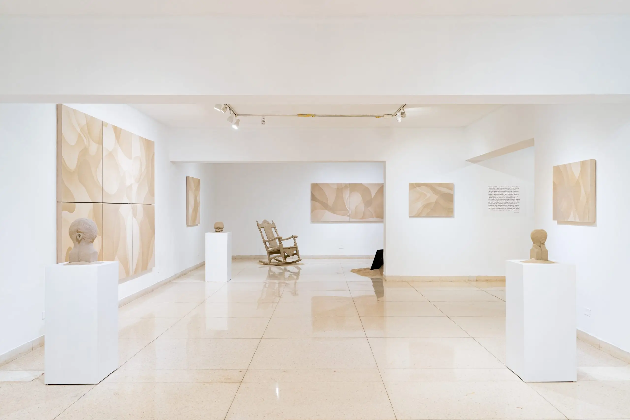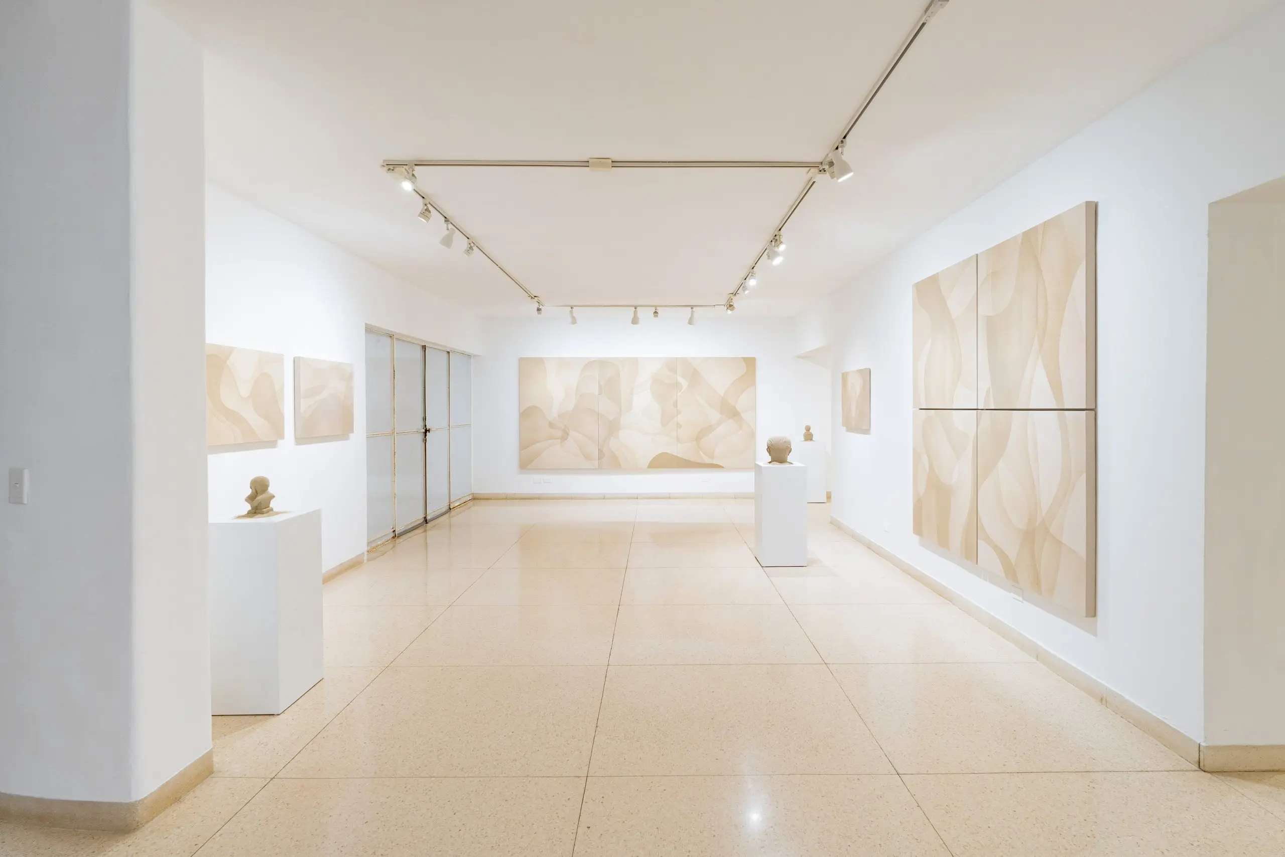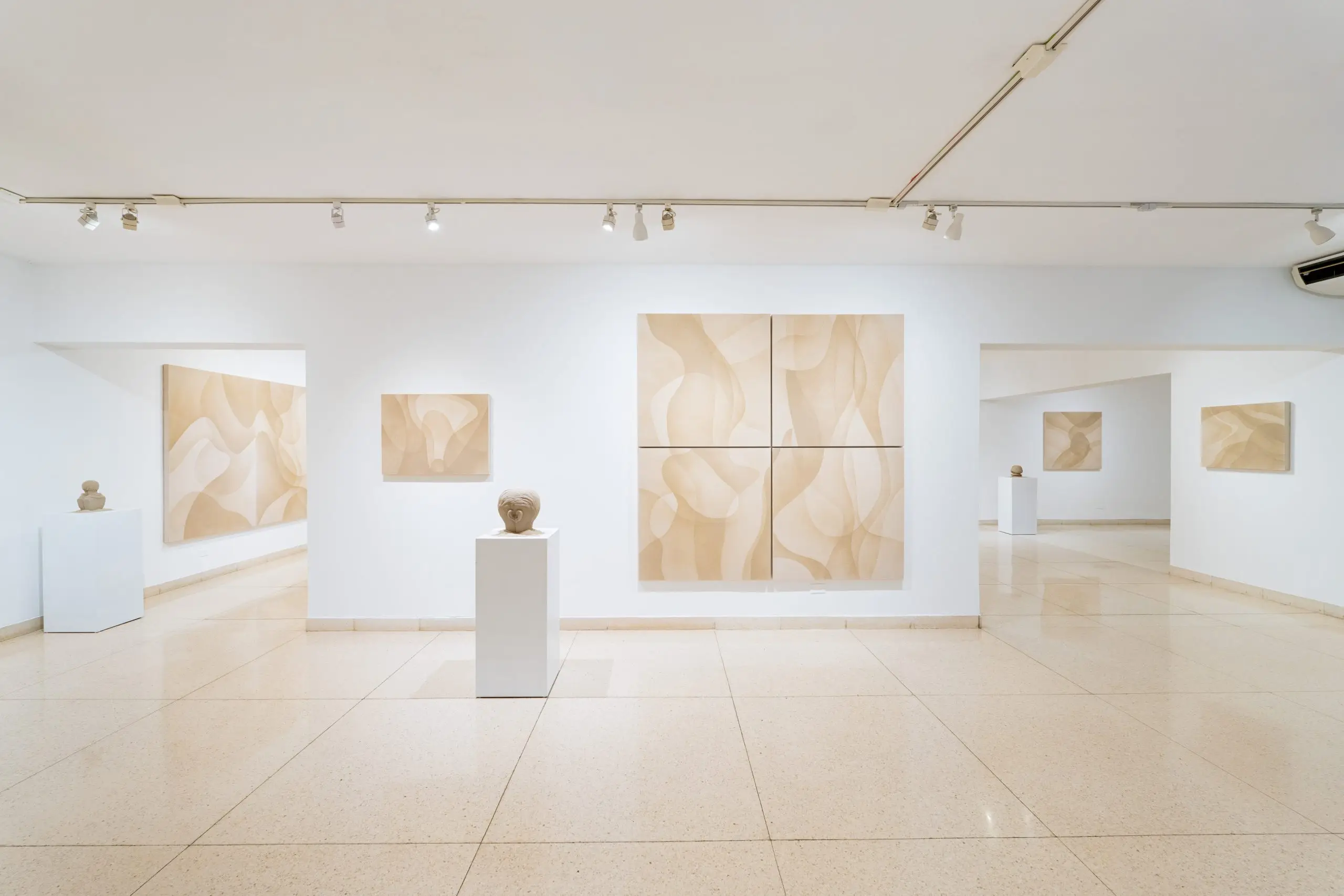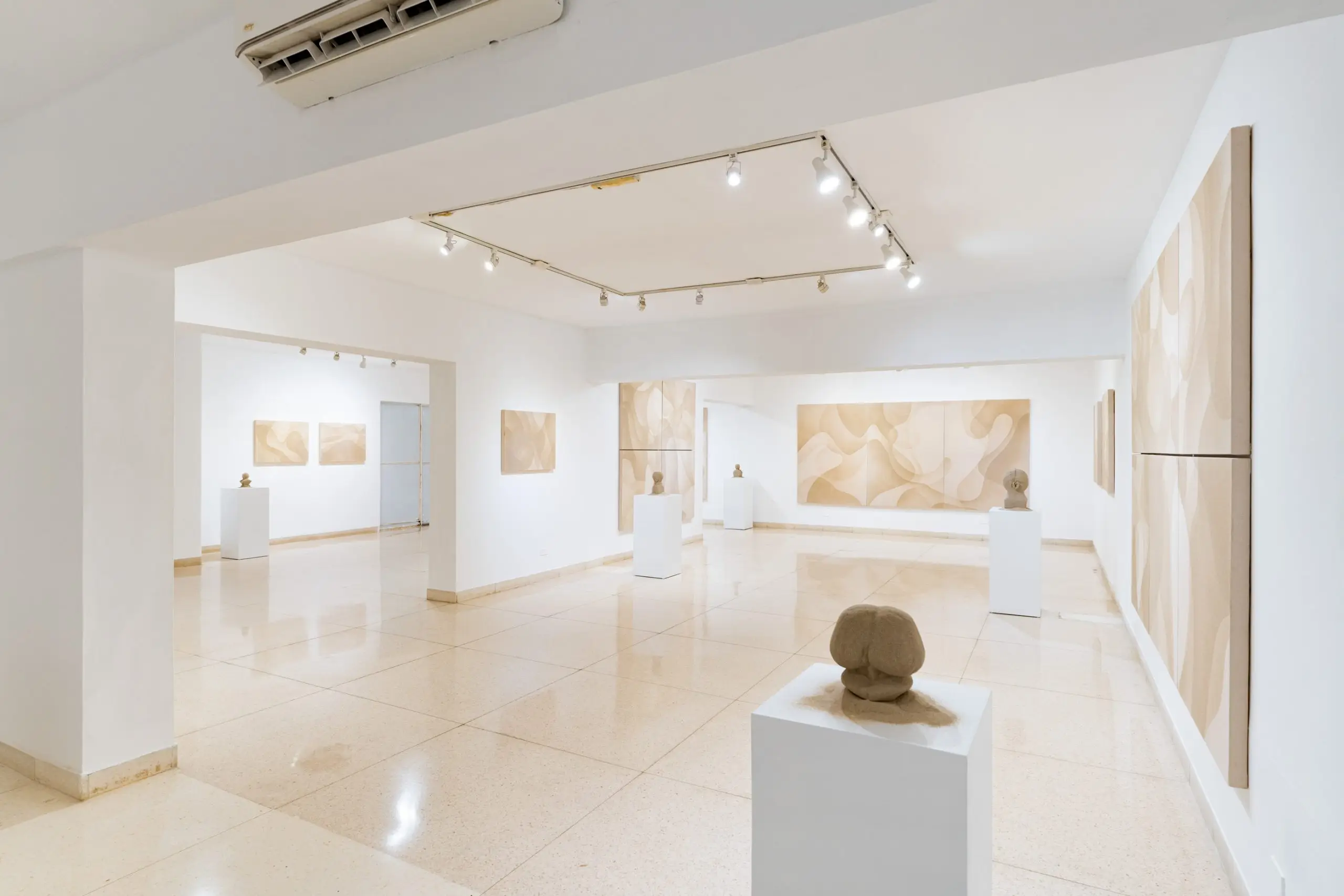 “Suspiros de arena” nasce da un gesto che si definisce tra il primario e il meditativo: prendere la sabbia tra le mani e lasciarla cadere intenzionalmente sulla tela grezza, come se ogni forma fosse un respiro sospeso, un sospiro che fissa l'istante. Questa tecnica evoca il ritmo organico della respirazione: inspirare, espirare; prendere, lasciare andare; esistere.