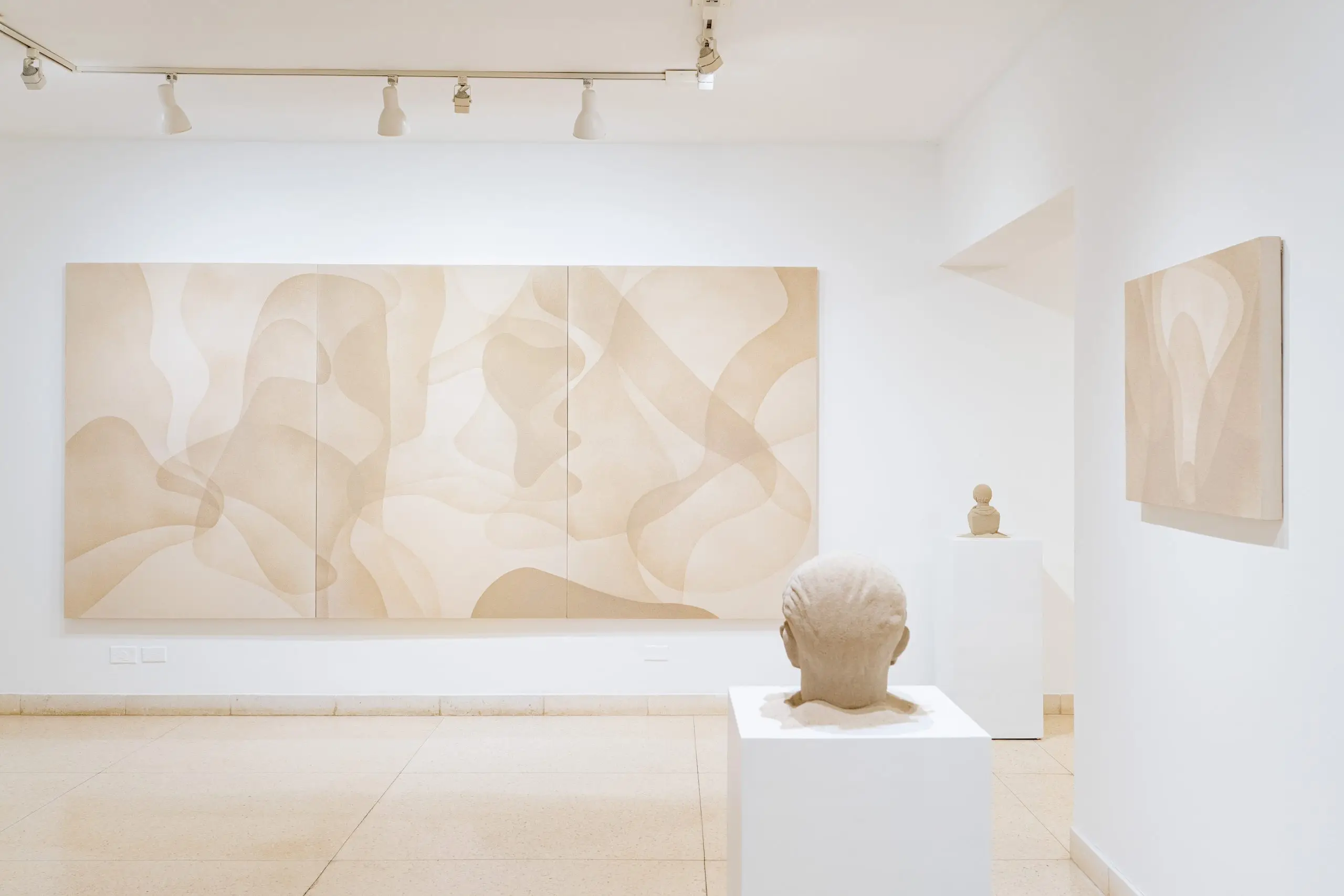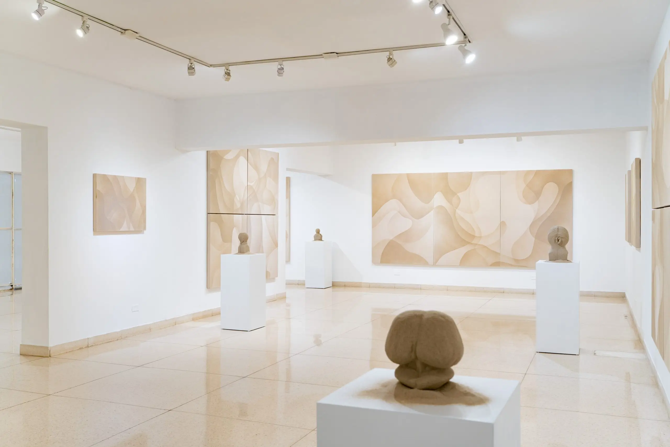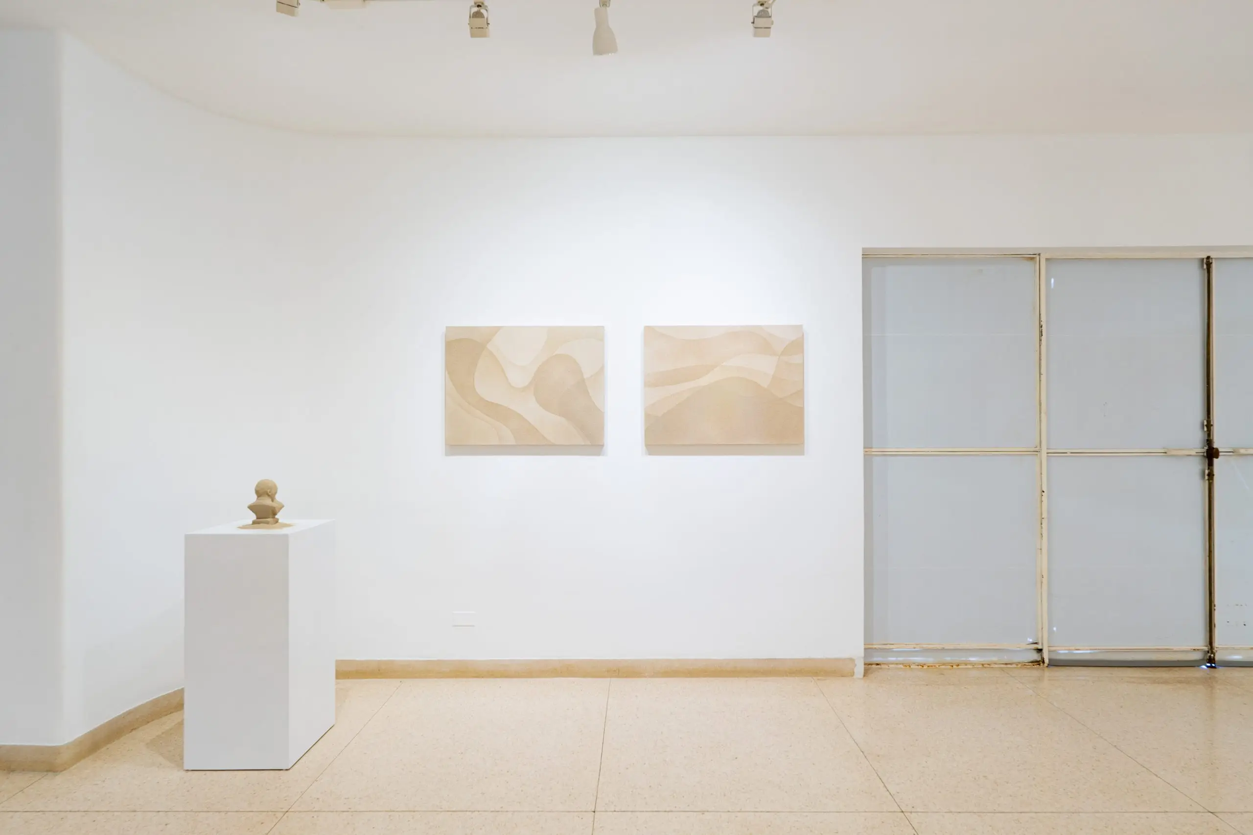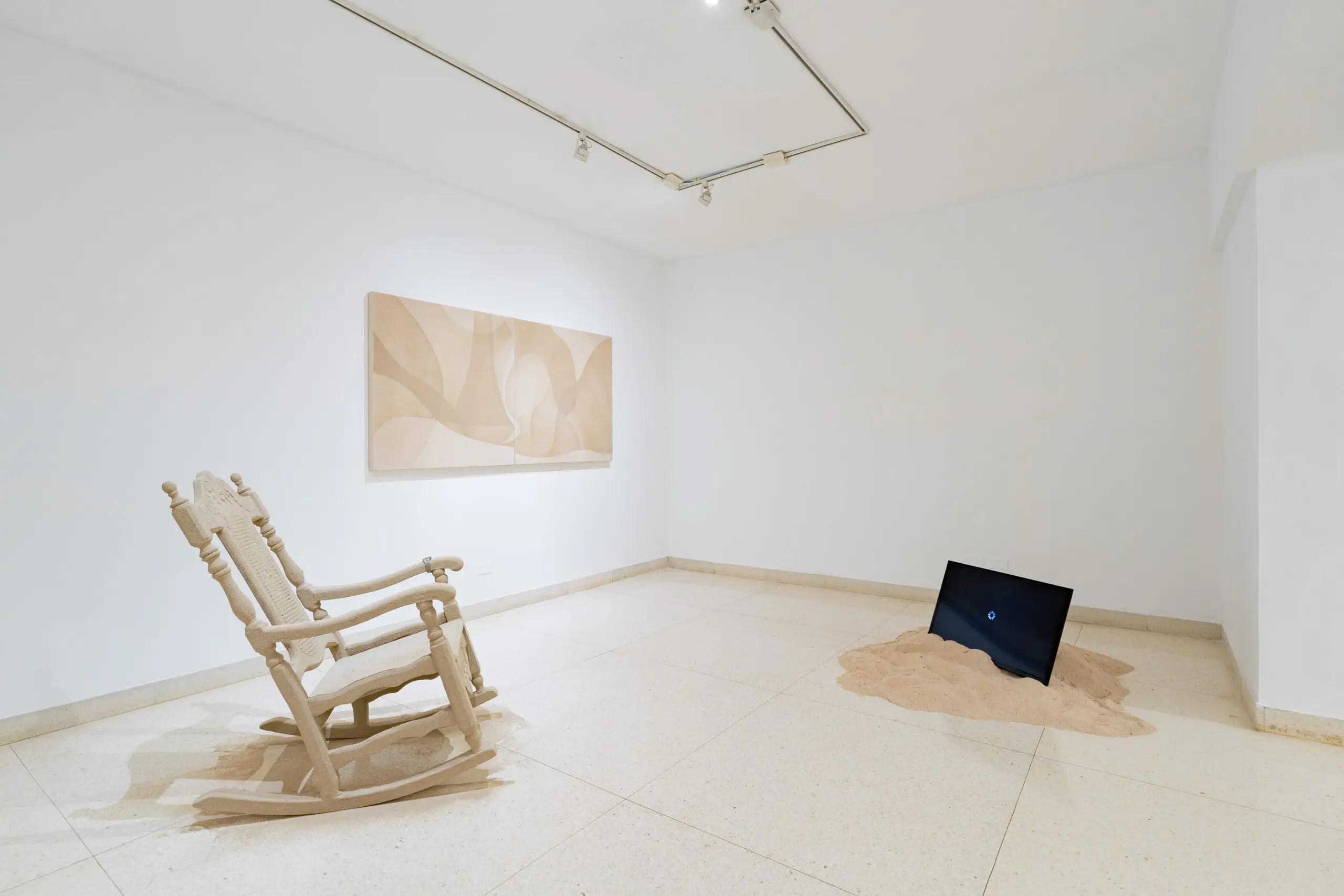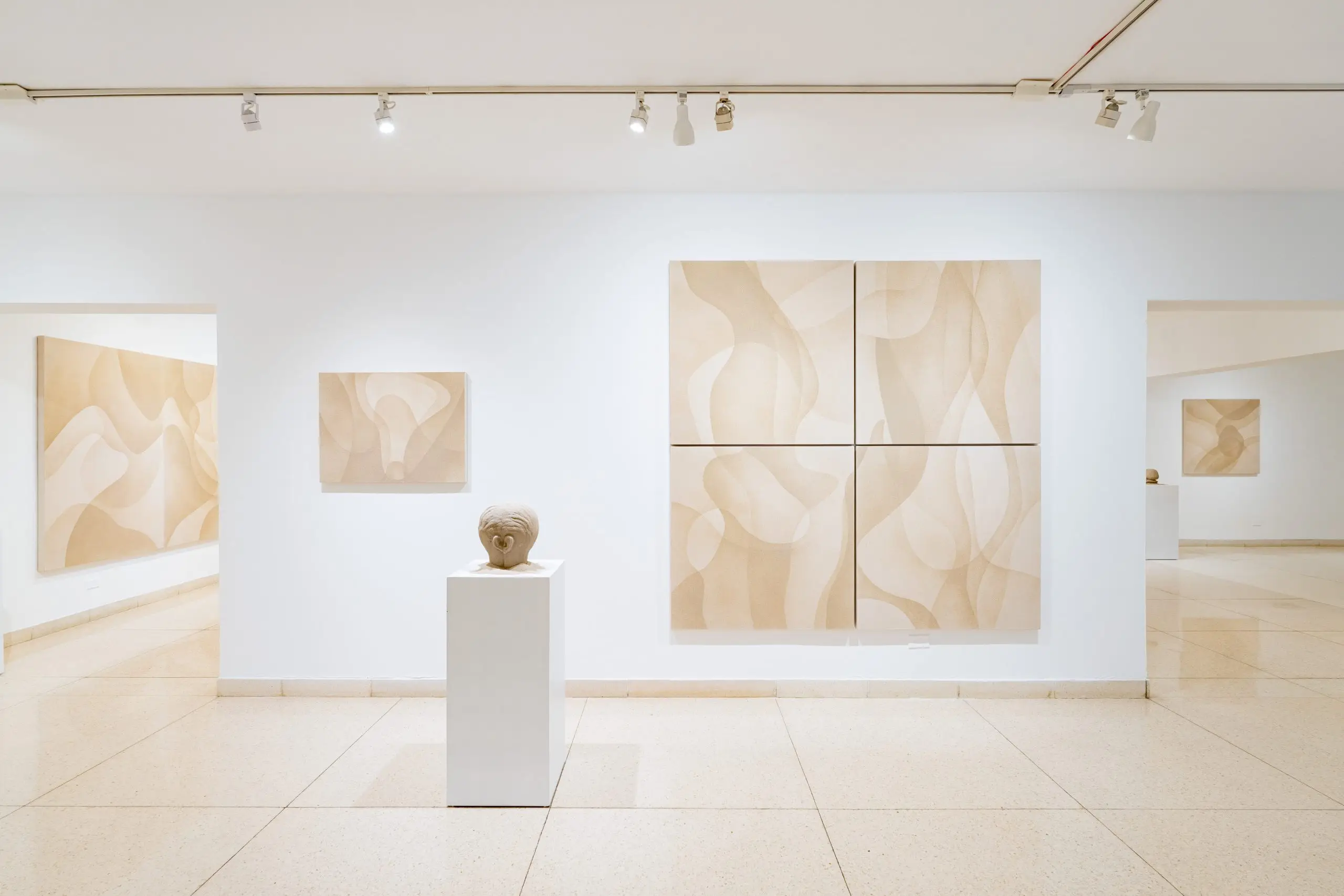 “Suspiros de arena” nasce da un gesto che si definisce tra il primario e il meditativo: prendere la sabbia tra le mani e lasciarla cadere intenzionalmente sulla tela grezza, come se ogni forma fosse un respiro sospeso, un sospiro che fissa l'istante. Questa tecnica evoca il ritmo organico della respirazione: inspirare, espirare; prendere, lasciare andare; esistere.
