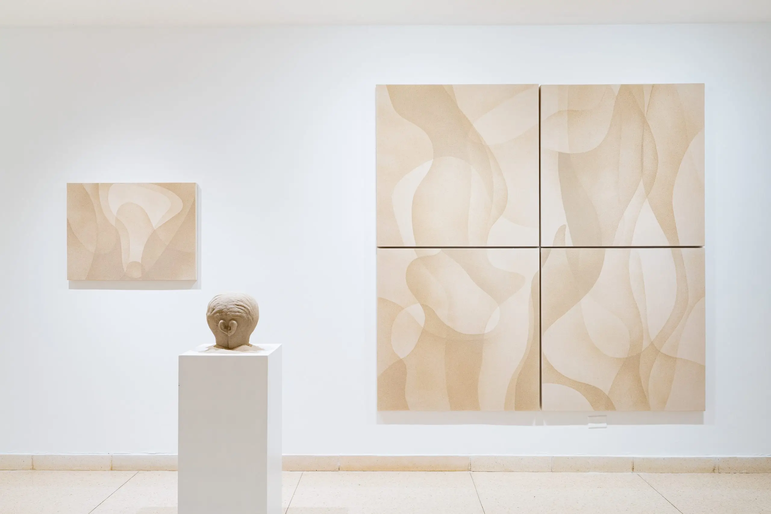 Le forme morbide che si rivelano non cercano di rappresentare nulla al di fuori di sé. Non sono immagini, ma presenze. Strati di sabbia marina che alludono al viaggio invisibile e persistente della sabbia attraverso il vento, al suo costante transito tra luoghi, tempi e corpi. In queste opere c'è un omaggio all'impermanenza, ma anche una volontà di permanenza: di fissare l'effimero nella memoria della tela.