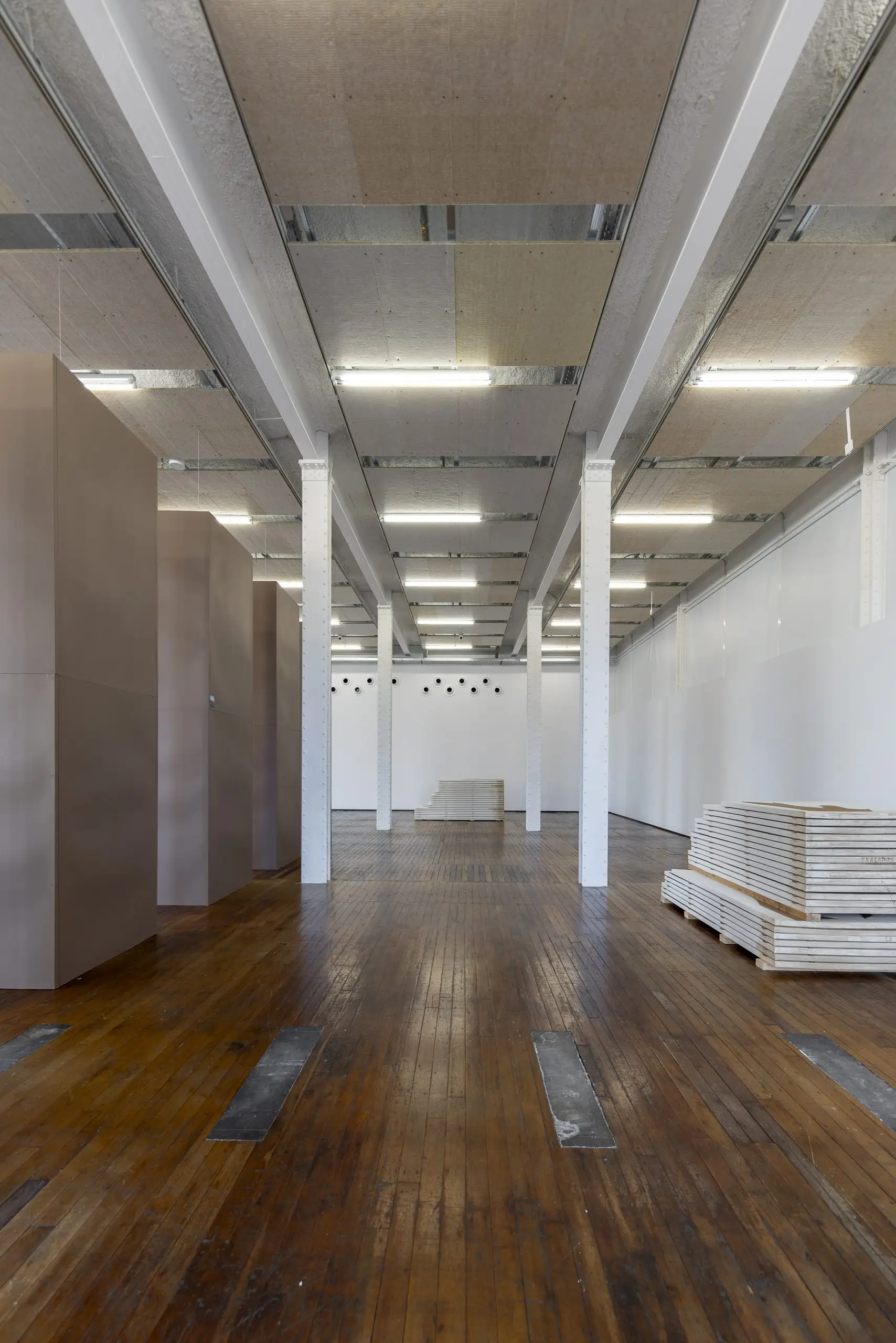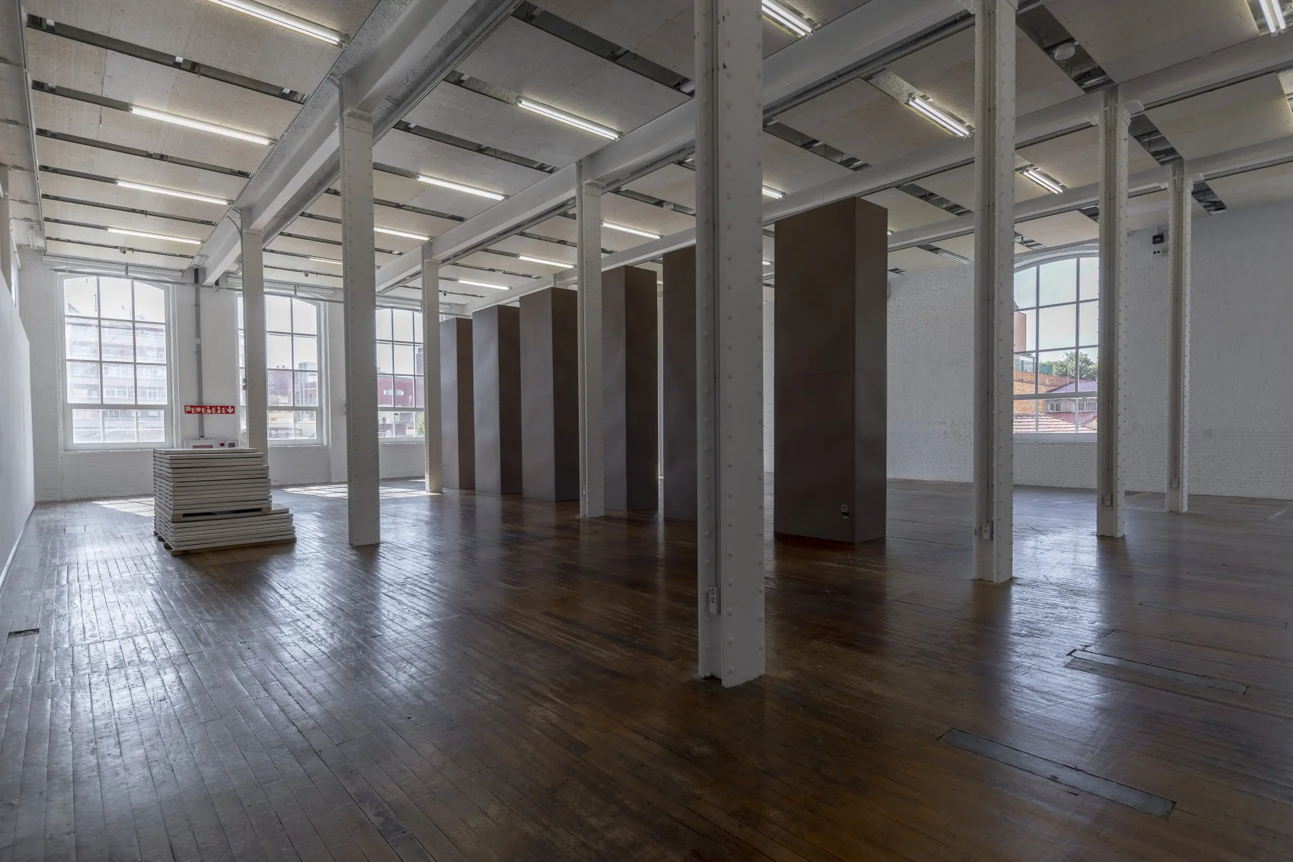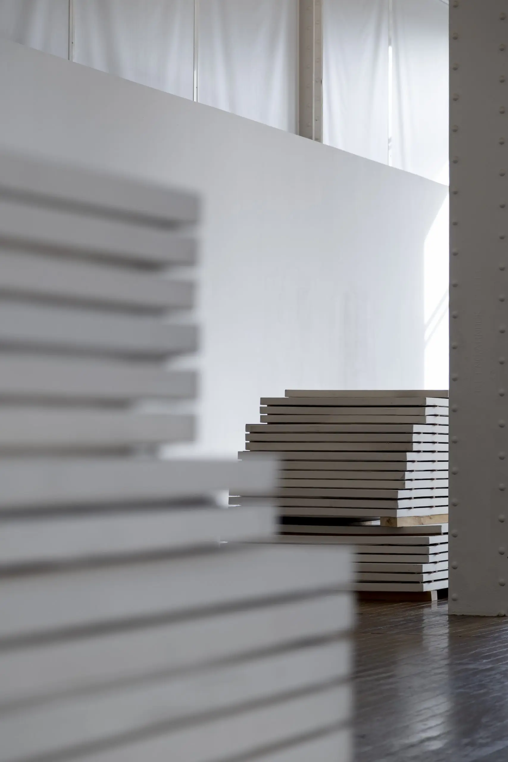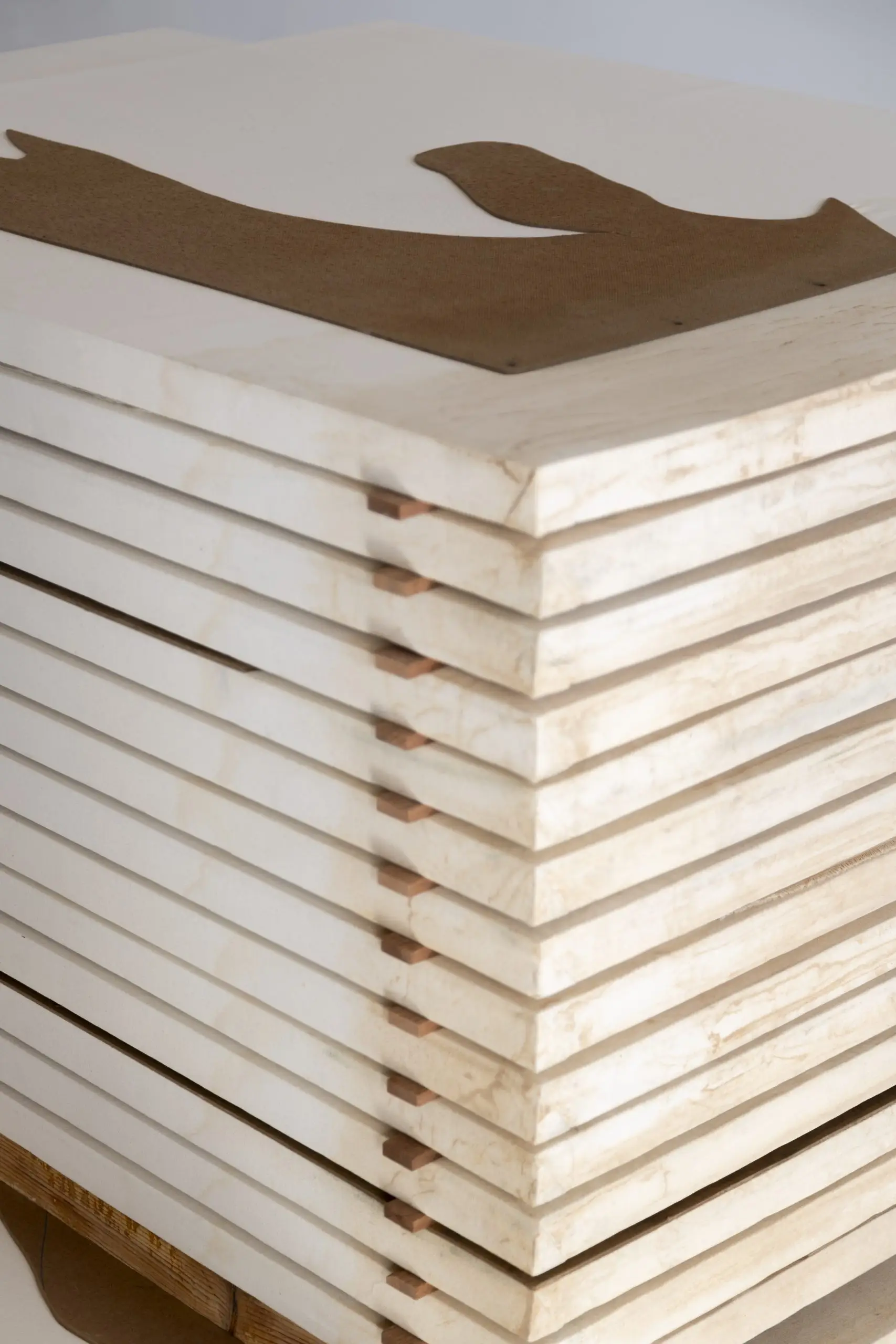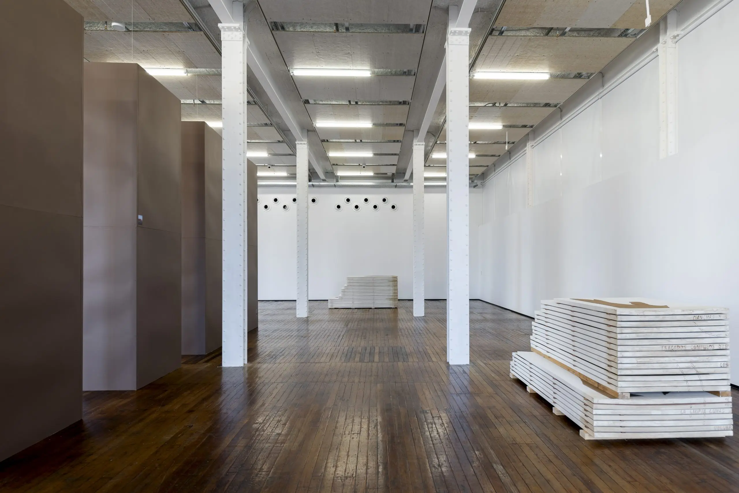 Imaginária é construída a partir da acumulação de vestígios que se repetem e se acumulam para gerar uma nova disposição material. Fuentesal Arenillas guarda, recorta, transporta todas essas memórias do decorrer dos anos partilhados, ficando aderidas a estas placas de táblex que foram o chão das suas oficinas, produzindo um arquivo de formas descontroladas. Um palimpsesto intervencionado pela natureza sem controlo, com um caminho para novas leituras adquiridas a partir de mais de setenta bastidores que dão forma à obra. Cada uma delas documenta formas concretas de presenças e ações daqueles que estiveram lá. Para esta ocasião, convidaram o artista LUCE a incorporar um novo olhar e uma nova leitura, contribuindo para ampliar essas camadas de memória. Um trabalho de rastreamento que comunica, une e narra outras formas de intimidade, tornando o quotidiano um cenário partilhado.