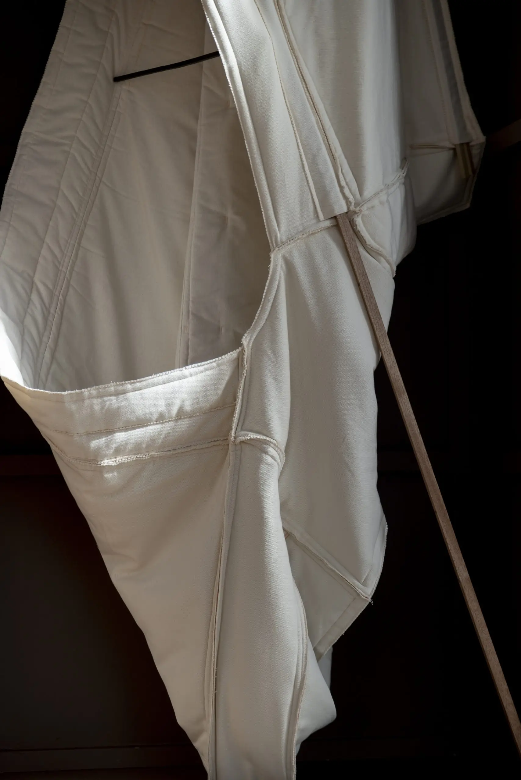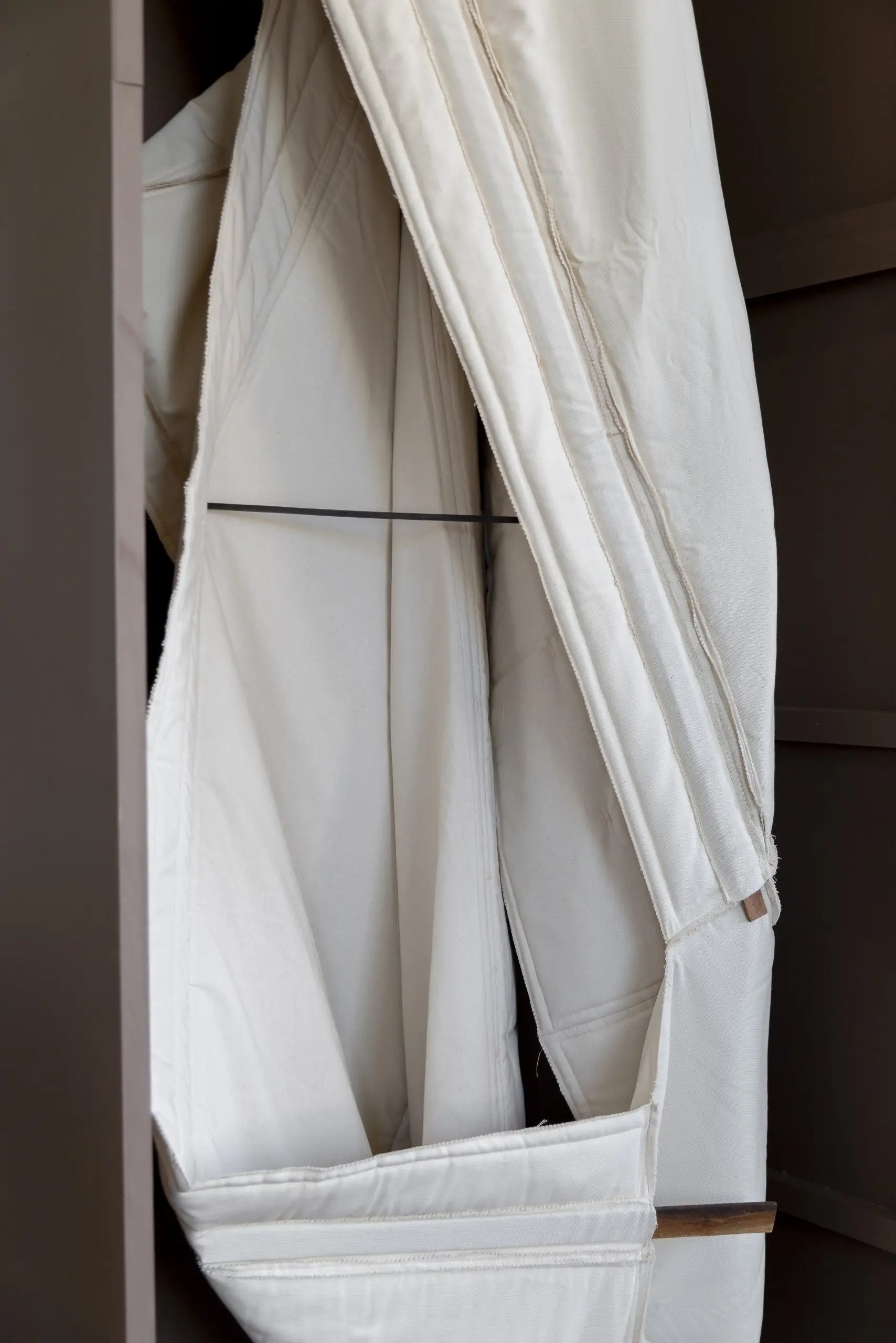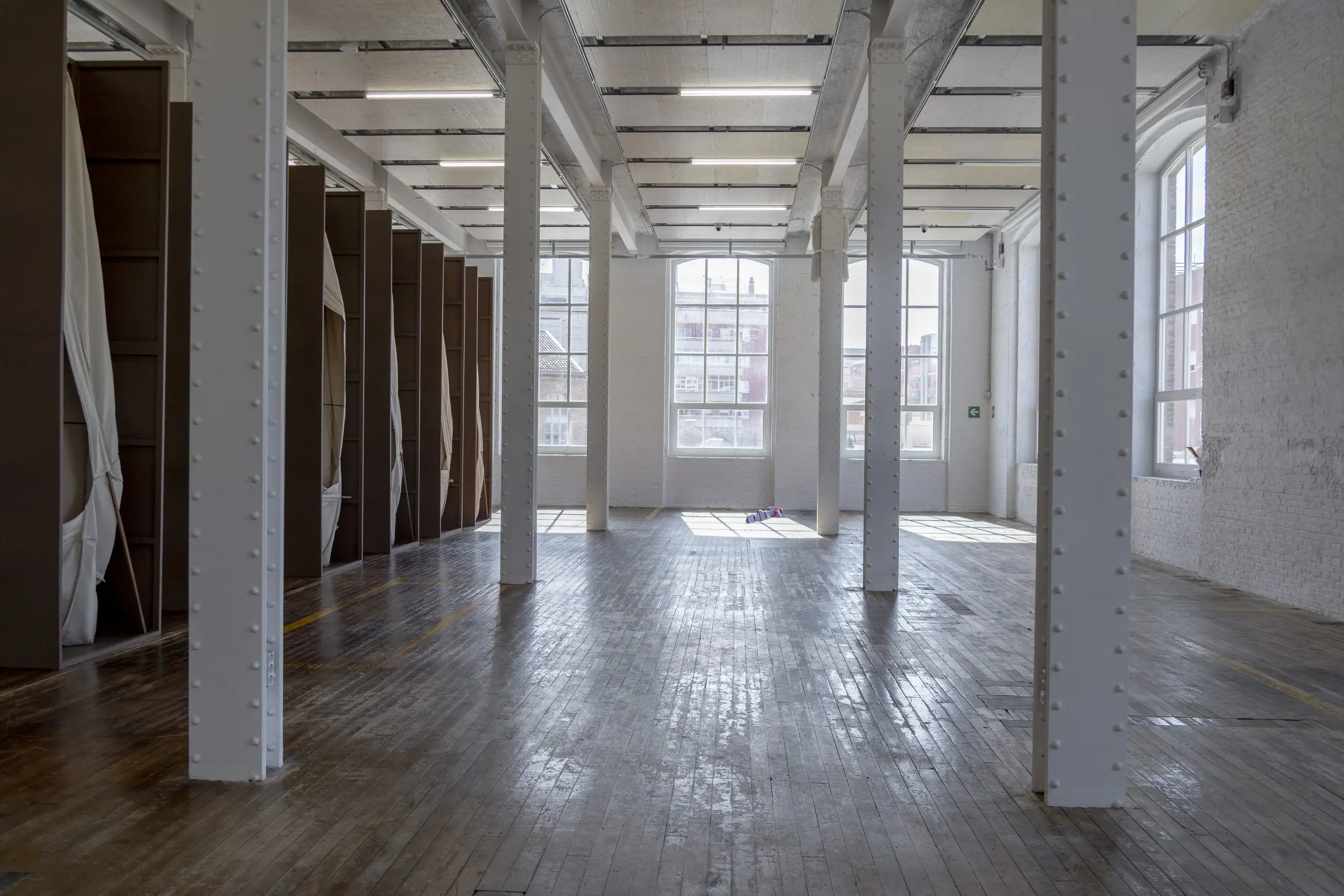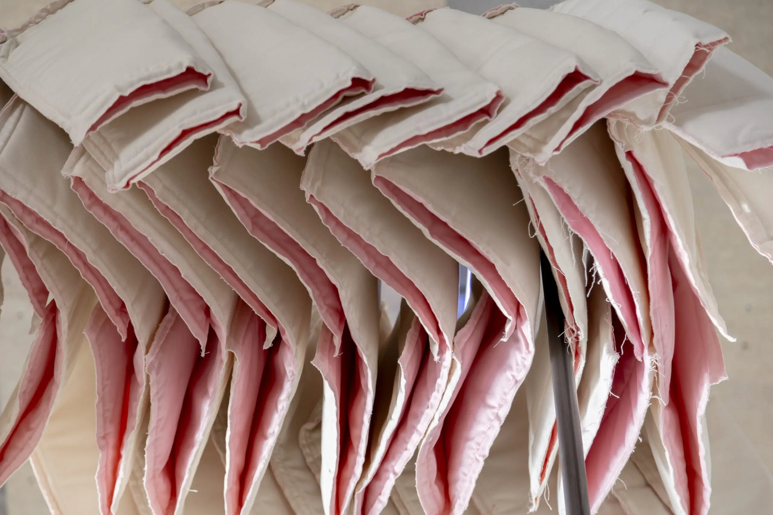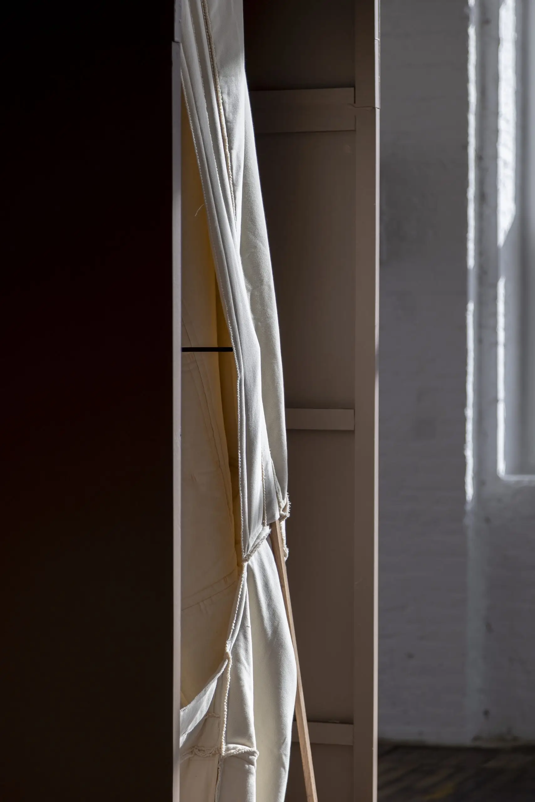 LÁIRIO de Fuentesal Arenillas, com curadoria de Claudia Elies, é uma exposição que se articula em torno de uma acumulação de peças têxteis, dispostas entre pilares e vitrines como uma grande coluna vertebral. O trabalho realizado pelas artistas foi sendo filtrado ao longo de todos estes anos, formando modos de entender a prática escultórica como uma aprendizagem coletiva adaptada a uma perda constante da forma.