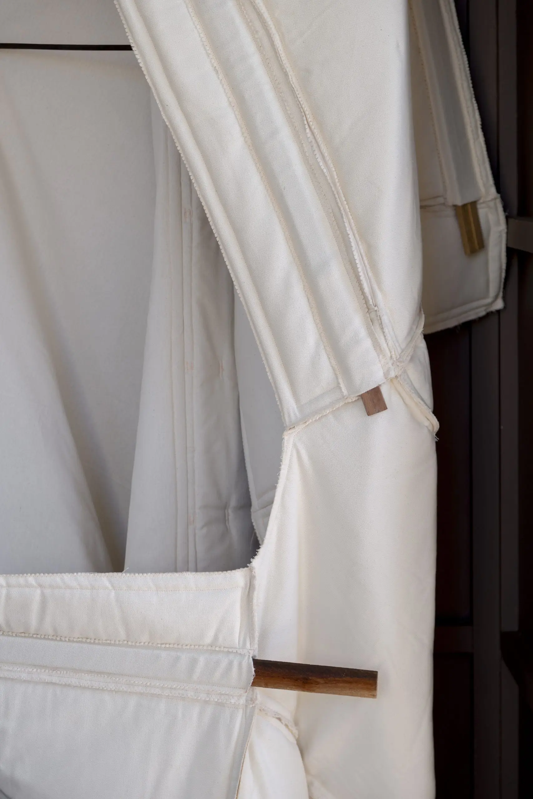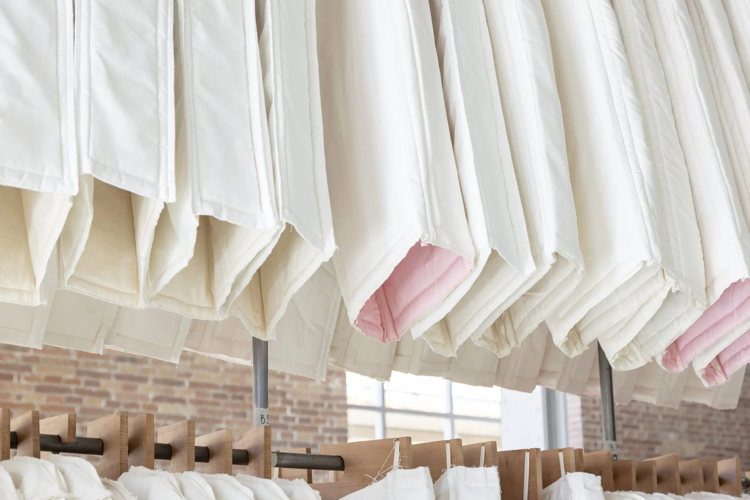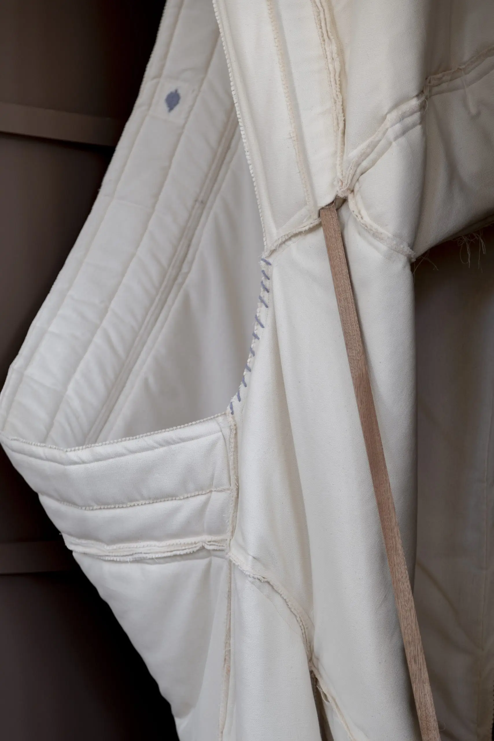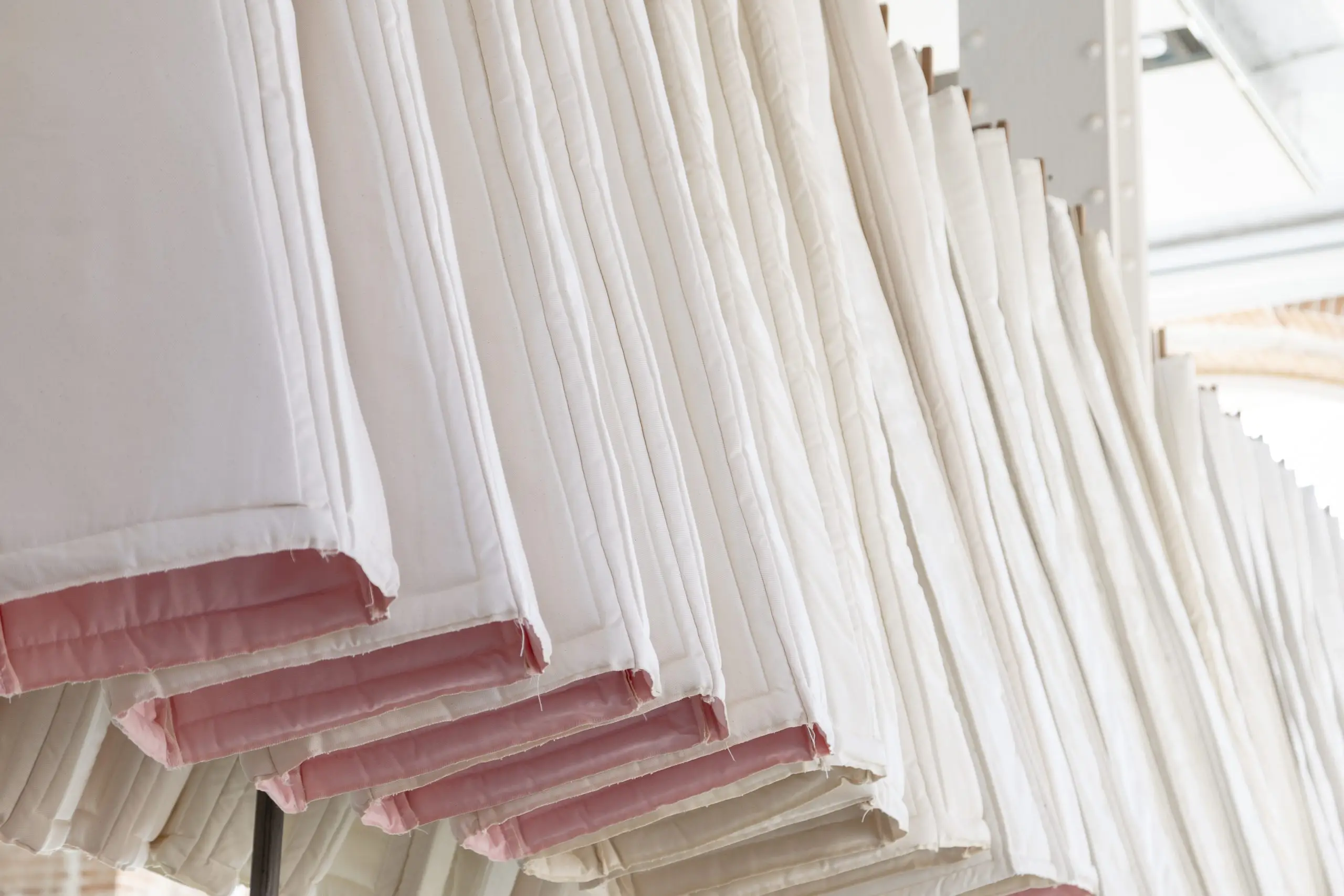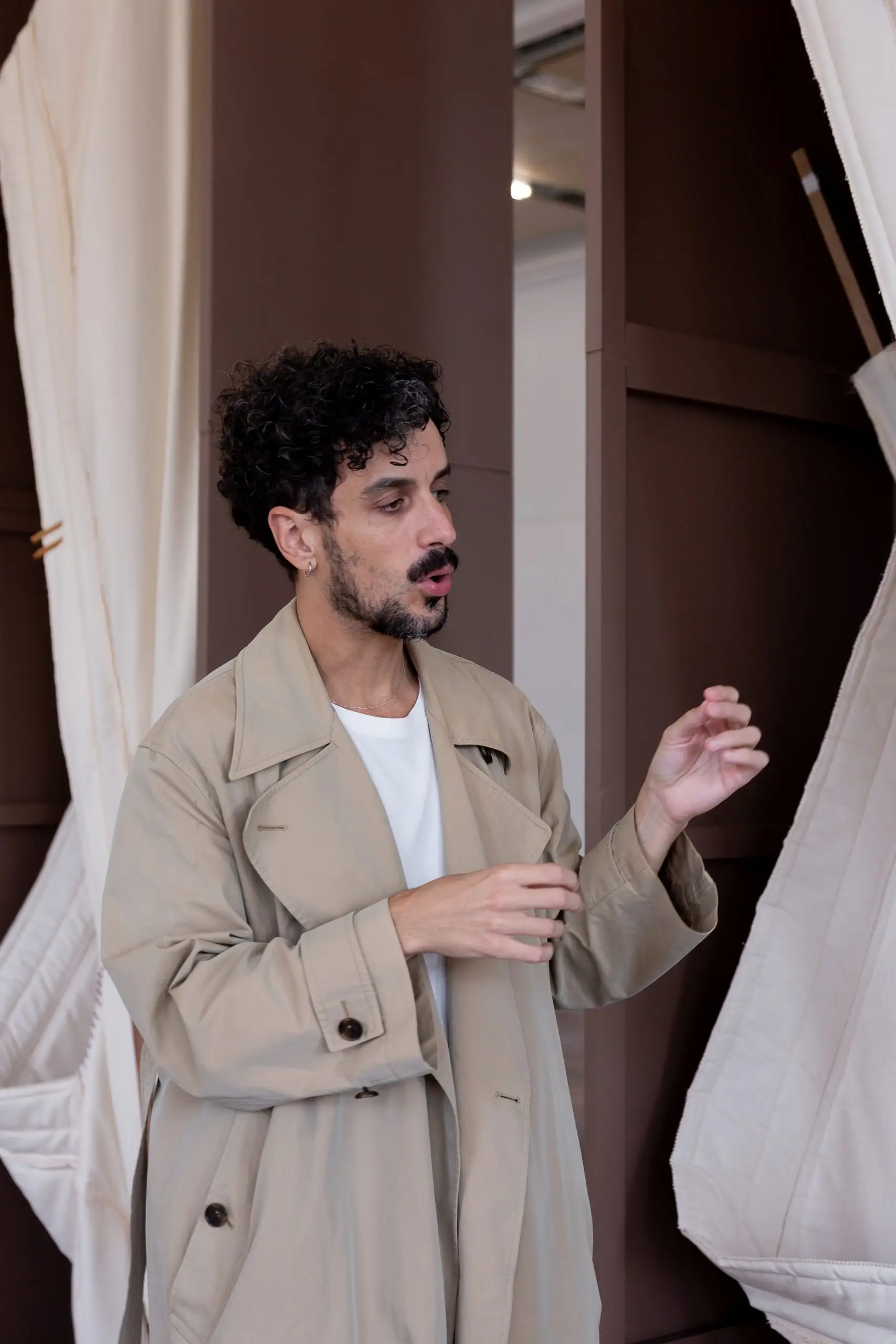 LÁIRIO de Fuentesal Arenillas, com curadoria de Claudia Elies, é uma exposição que se articula em torno de uma acumulação de peças têxteis, dispostas entre pilares e vitrines como uma grande coluna vertebral. O trabalho realizado pelas artistas foi sendo filtrado ao longo de todos estes anos, formando modos de entender a prática escultórica como uma aprendizagem coletiva adaptada a uma perda constante da forma.
