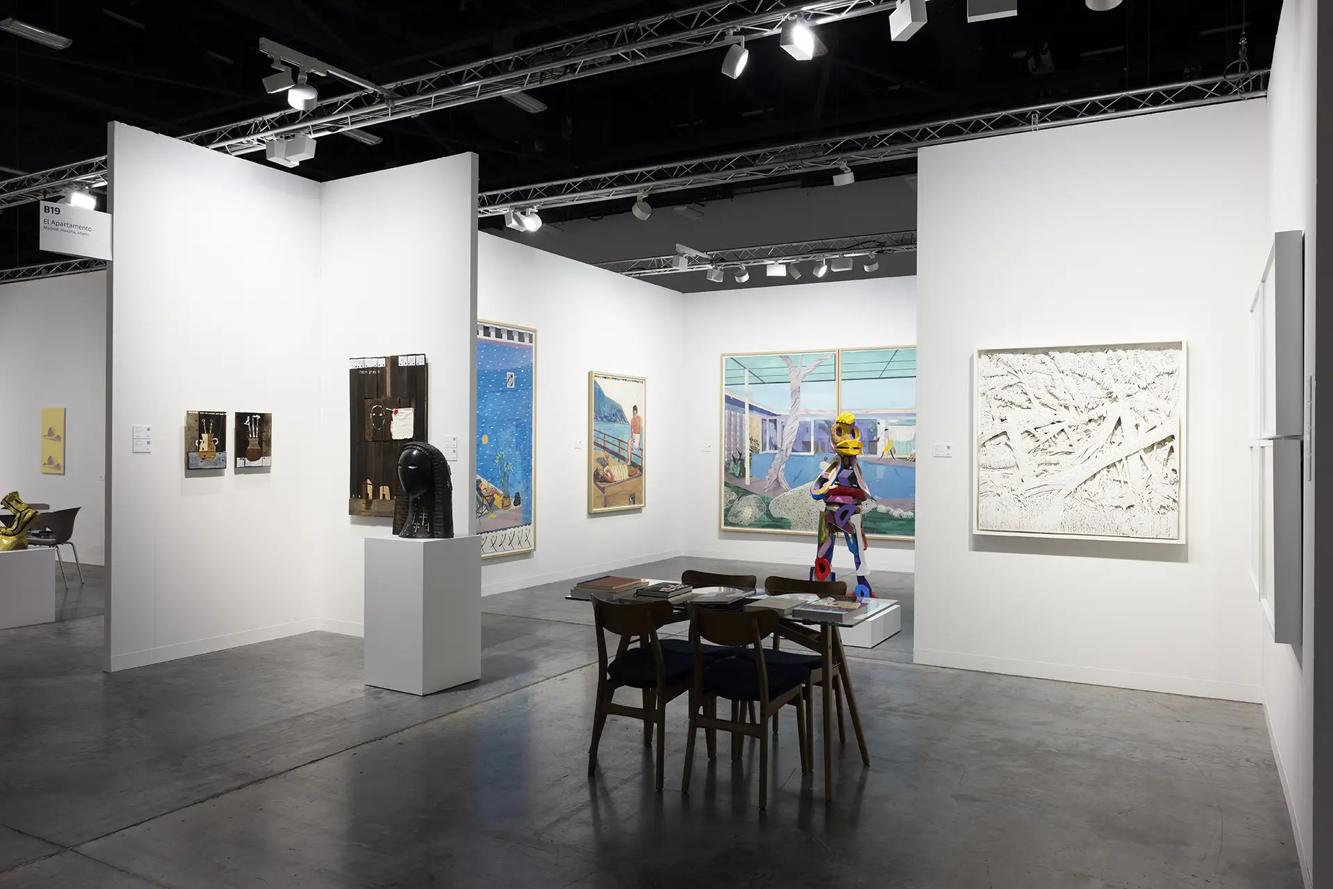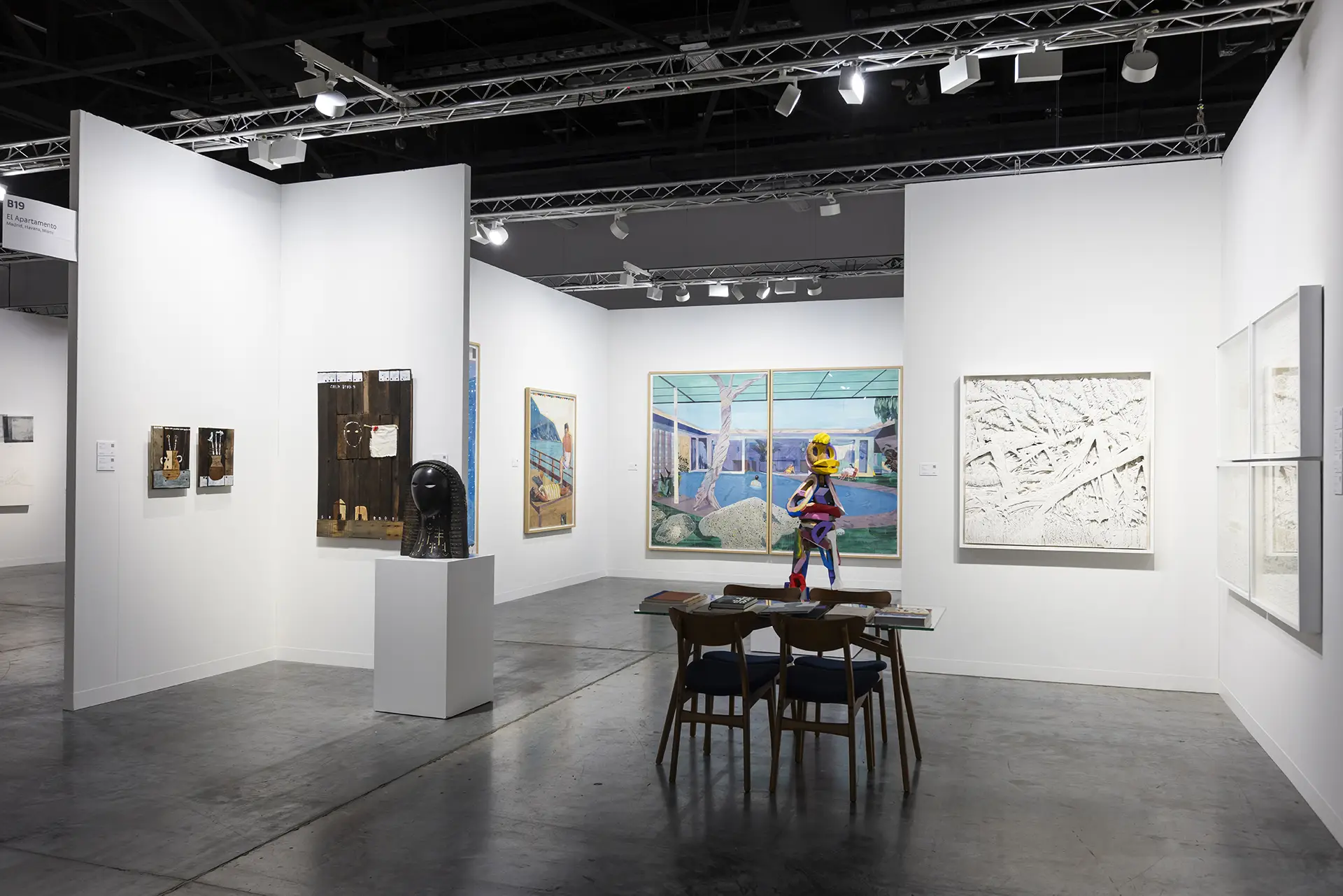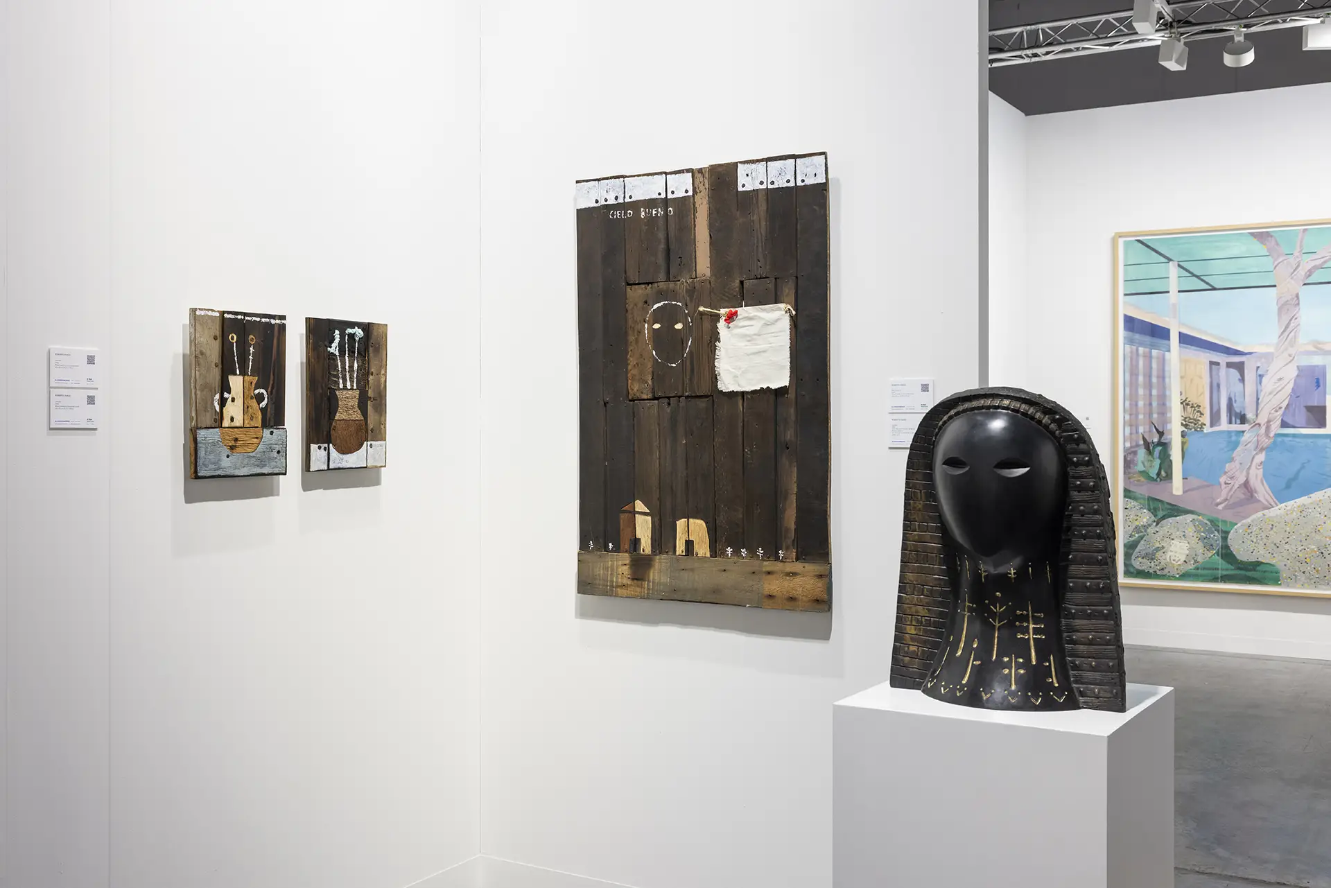 巴塞尔艺术展 迈阿密海滩,2025年 阿里安娜·康蒂诺 - 罗伯托·迪亚戈 - 戴安娜·丰塞卡 - 奥雷斯特斯·埃尔南德斯 - 米基·莱阿尔 2025年12月5日至7日展位:B19 我们为2025年巴塞尔艺术展迈阿密海滩展提出的方案,汇聚了五位艺术家。尽管他们在创作媒介和叙事关注点上各不相同,但都聚焦于共同探索当代世界中图像、文化符号与记忆如何被构建与协商。 阿里安娜·康蒂诺、罗伯托·迪亚戈、戴安娜·丰塞卡、奥雷斯特斯·埃尔南德斯与米基·莱亚尔,各自以独特创作过程回应所处语境的紧迫性,揭示日常体验中嵌入的美学、政治与情感层叠。.阿里安娜·康蒂诺的作品以对社会与生态系统脆弱性的静默而犀利的反思,为本项目揭开序幕。 通过精巧的手工镂空纸艺,她将风景与制图实践转化为可触摸的冥想之物,揭示人类存在与栖居环境间的微妙张力。其创作实践构建出一种视觉策略,将精准转化为抵抗形式:面对加速消费与空间侵蚀,以缓慢沉思的姿态作出回应。.罗伯托·迪亚戈通过一系列作品深化了这种敏感性,这些作品直面种族化在历史与现实中的多重面向。他运用建筑材料的语言——木材、煤灰、拾得物——使作品既成为纪念碑,亦是宣言。迪亚戈将非洲后裔经历的创伤重构为持久的建筑形态,构建出拒绝被抹去的反档案。.戴安娜·丰塞卡以另一种颠覆性方式审视日常生活。她的作品探索都市生活的诗意与矛盾,将相遇的表面、个人记忆与大众想象碎裂重组。通过这些层叠的表象,丰塞卡揭示了我们视为恒常之物的本质动荡,将城市呈现为一个持续协商的有机体。.奥雷斯特斯·埃尔南德斯那充满游戏性却令人不安的宇宙,为整体作品注入了扭曲的心理维度。他笔下的混合体角色——既是寓言又是数字神话——映射出当代主观性的错位。通过将童年想象与数字时代的视觉噪音相融合,埃尔南德斯揭示了我们为应对脆弱、恐惧与欲望而创造的生存策略。.最终,米基·莱尔的创作实践赋予作品丰富的色彩与构图维度,使该项目得以与绘画展开更广阔的对话。其创作灵感——从文学到爵士乐,从设计到电影——在视觉环境中得以展开,直觉与结构在此共生共存。莱尔的作品凸显了个人叙事与文化历史之间富有成效的张力。.这五位艺术家共同构建了一种基于敏感性与批判意识的当代视角。他们的作品描绘了个体如何栖居、抵抗并重塑那些构筑我们集体生活的象征性建筑。. 作品 阿里亚姆娜-孔蒂诺《丛林》系列,果实累累的鹿角兰, 2025手工雕花纸 / Fabriano 300克冷压酸性免费水彩卡纸,博物馆级透明度203 x 153 厘米(80 x 60.2 英寸) 阿里亚姆娜-孔蒂诺《丛林》系列,果实累累的鹿角兰, 2025手工雕花纸 / Fabriano 300克冷压酸性免费水彩卡纸,博物馆级透明度203 x 153 厘米(80 x 60.2 英寸) 阿里亚姆娜-孔蒂诺来自 Manigua 系列、 牵牛花和曼陀罗花, 2025手工雕花纸 / Fabriano 300克冷压酸性免费水彩卡纸,博物馆级透明度83 x 83 厘米(32.7 x 32.7 英寸) 阿里亚姆娜-孔蒂诺来自 Manigua 系列、 马鞭草与雏菊, 2025手工雕花纸 / Fabriano 300克冷压酸性免费水彩卡纸,博物馆级透明度83 x 83 厘米(32.7 x 32.7 英寸) 阿里亚姆娜-孔蒂诺来自 Manigua 系列、 刺叶凤梨与百合, 2025手工雕花纸 / Fabriano 300克冷压酸性免费水彩卡纸,博物馆级透明度83 x 83 厘米(32.7 x 32.7 英寸) 阿里亚姆娜-孔蒂诺来自 Manigua 系列、 牵牛花和曼陀罗花, 2025手工雕花纸 / Fabriano 300克冷压酸性免费水彩卡纸,博物馆级透明度83 x 83 厘米(32.7 x 32.7 英寸) 阿里亚姆娜-孔蒂诺来自 Manigua 系列、 马鞭草与雏菊, 2025手工雕花纸 / Fabriano 300克冷压酸性免费水彩卡纸,博物馆级透明度83 x 83 厘米(32.7 x 32.7 英寸) 阿里亚姆娜-孔蒂诺来自 Manigua 系列、 刺叶凤梨与百合, 2025手工雕花纸 / Fabriano 300克冷压酸性免费水彩卡纸,博物馆级透明度83 x 83 厘米(32.7 x 32.7 英寸) 罗伯托-迪亚哥我的东西和我, 2025混合媒介于回收木材上120 x 80 厘米(47.2 x 31.5 英寸) 罗伯托-迪亚哥我的东西和我, 2025混合媒介于回收木材上120 x 80 厘米(47.2 x 31.5 英寸) 罗伯托-迪亚哥我的东西和我, 2025混合媒介于回收木材上120 x 80 厘米(47.2 x 31.5 英寸) 罗伯托-迪亚哥我的东西和我, 2025混合媒介于回收木材上120 x 80 厘米(47.2 x 31.5 英寸) 罗伯托-迪亚哥我的东西和我, 2025混合媒介于回收木材上120 x 80 厘米(47.2 x 31.5 英寸) 罗伯托-迪亚哥我的东西和我, 2025混合媒介于回收木材上120 x 80 厘米(47.2 x 31.5 英寸) 罗伯托-迪亚哥我的东西和我, 2025混合媒介于回收木材上80 x 120 厘米(31.5 x 47.2 英寸) 罗伯托-迪亚哥《山人》系列之《无题》, 2025青铜雕塑60 x 46 x 32 厘米(23.6 x 18.1 x 12.6 英寸)限量3套 罗伯托-迪亚哥我的东西和我, 2025混合媒介于回收木材上80 x 120 厘米(31.5 x 47.2 英寸) 罗伯托-迪亚哥《山人》系列之《无题》, 2025青铜雕塑60 x 46 x 32 厘米(23.6 x 18.1 x 12.6 英寸)限量3套 罗伯托-迪亚哥无标题, 2025混合媒介于回收木材上40 x 30 厘米(15.7 x 11.8 英寸) 罗伯托-迪亚哥无标题, 2025混合媒介于回收木材上60 x 33 厘米(23.6 x 13 英寸) 罗伯托-迪亚哥无标题, 2025混合媒介于回收木材上40 x 30 厘米(15.7 x 11.8 英寸) 罗伯托-迪亚哥无标题, 2025混合媒介于回收木材上40 x 30 厘米(15.7 x 11.8 英寸) 罗伯托-迪亚哥无标题, 2025混合媒介于回收木材上60 x 33 厘米(23.6 x 13 英寸) 罗伯托-迪亚哥无标题, 2025混合媒介于回收木材上40 x 30 厘米(